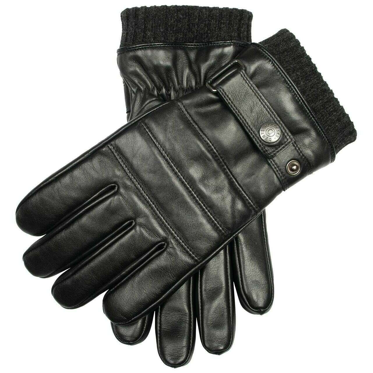 Präsentiert von der Marke Dents, Diese schwarzen Skipton-Lederhandschuhe für Herren mit Strickbündchen und Stichdetails bestehen aus Außenmaterial: 100 % Haarschafsleder, Futter: 100 % Polyesterfleece. Auch die schwarzen Handschuhe sind in einem schlichten Muster gestaltet. Alle Handschuhe werden komplett mit Dellenetiketten geliefert. Der Dents Die Skipton-Lederhandschuhe mit gestrickten Bündchen und Stichdetails in Schwarz wurden im Biker-Stil gefertigt und vereinen einen coolen Touch mit Komfort beim Fahren oder für Pläne in diesen kälteren Jahreszeiten. Die Herstellung aus hochwertigem Haarschafsleder gewährleistet einen wasserabweisenden und langlebigen Tragekomfort, während das weiche Kunstfellfutter für Wärme und ein angenehmes Tragegefühl sorgt. Die Strickbündchen, das elastische Handgelenk sowie der Riemen- und Rollenverschluss sorgen für einen sicheren Sitz und sorgen gleichzeitig dafür, dass die Wärme drinnen und die Kälte draußen bleibt.