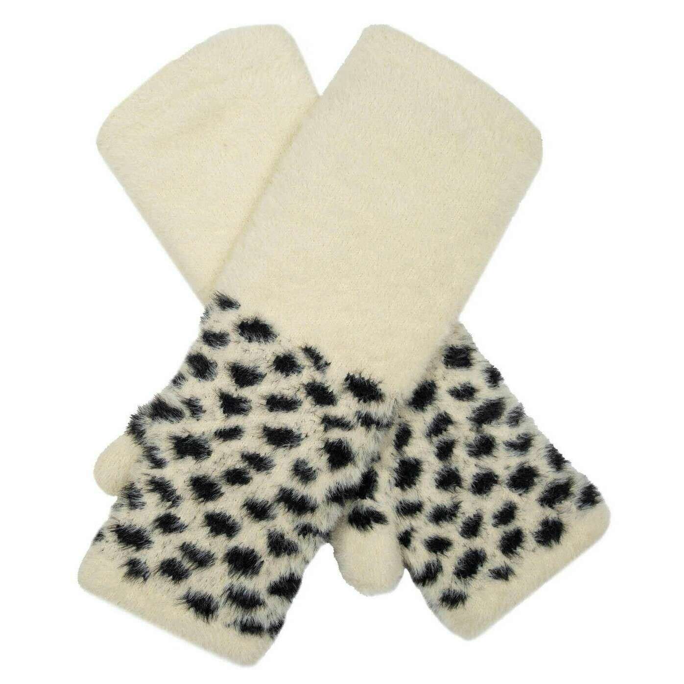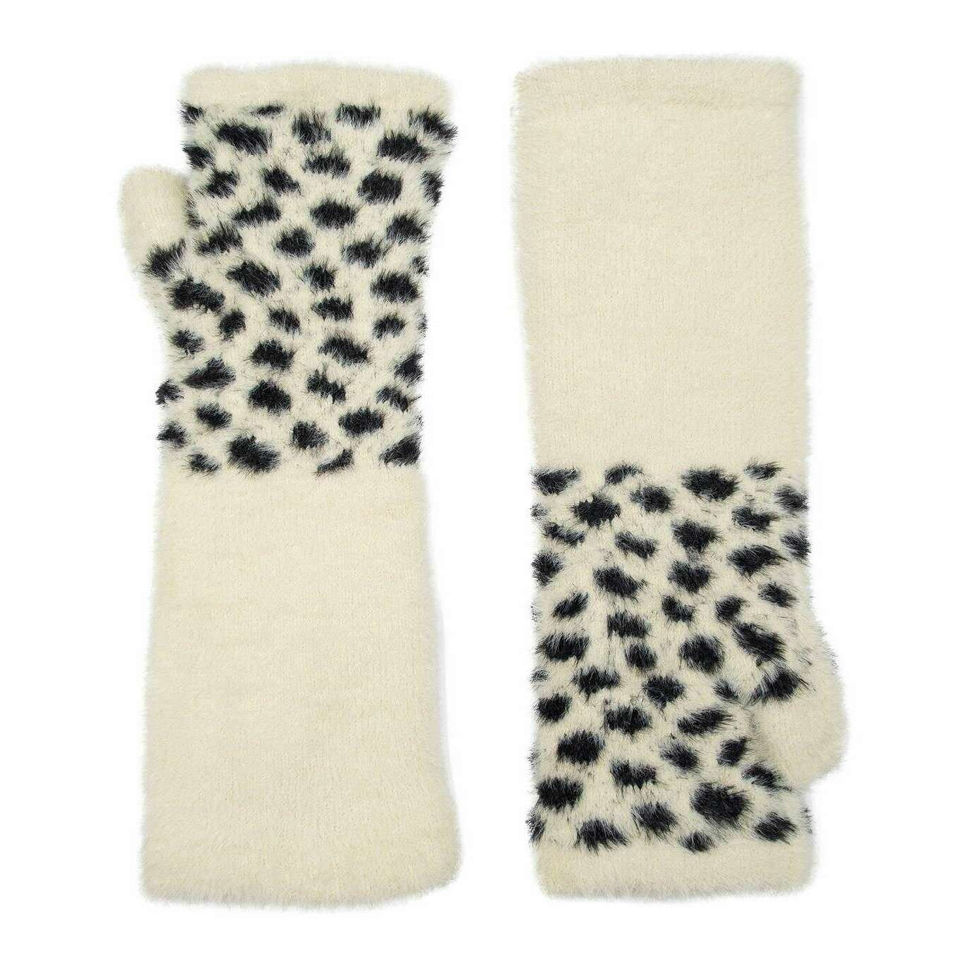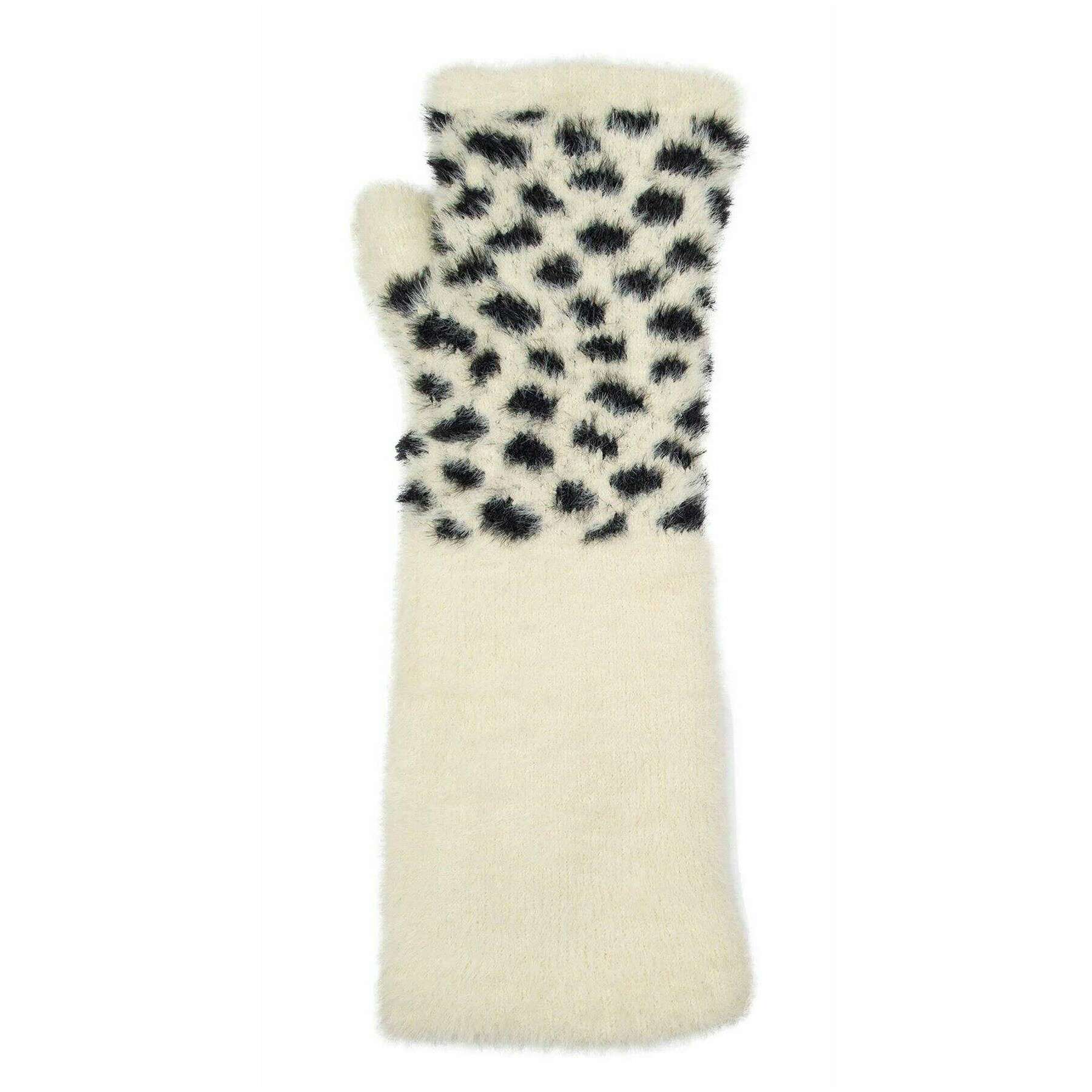 Dents Spotted Federgarn gestrickte Handgelenkwärmer - Elfenbeinweiß