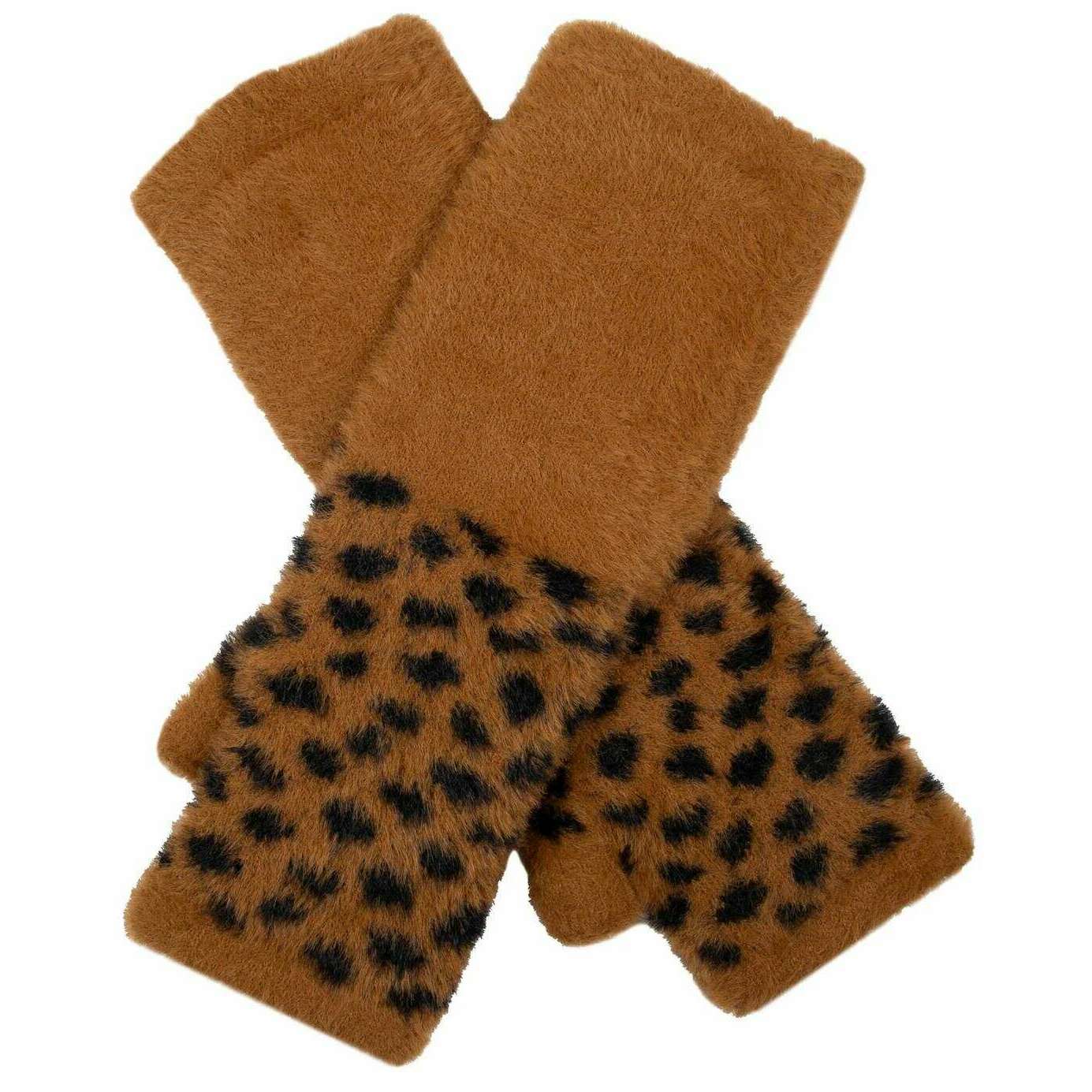 Dents Spotted Federgarn gestrickte Handgelenkwärmer - Tan Beige
