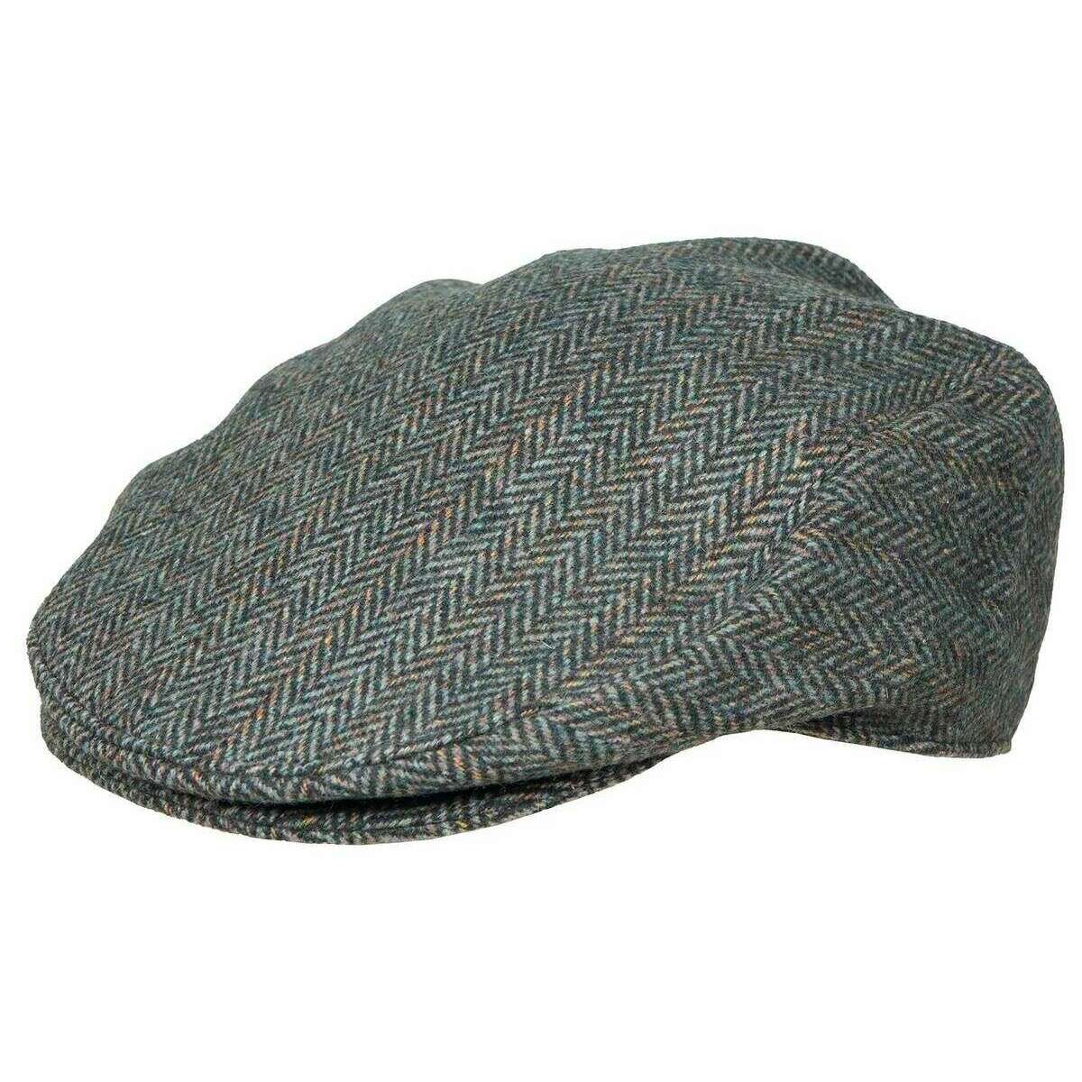 Dents Thirlmere Fischgräten-Tweed-Schiebermütze – Olivgrün