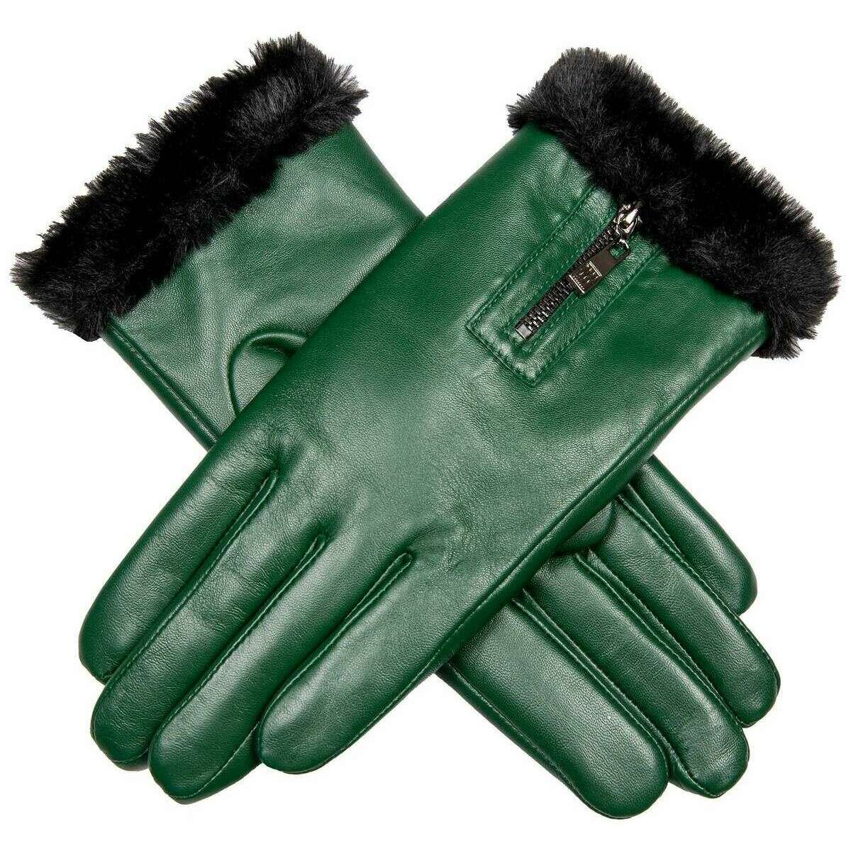 Dents Lederhandschuhe mit Yasmin-Manschette – Waldgrün