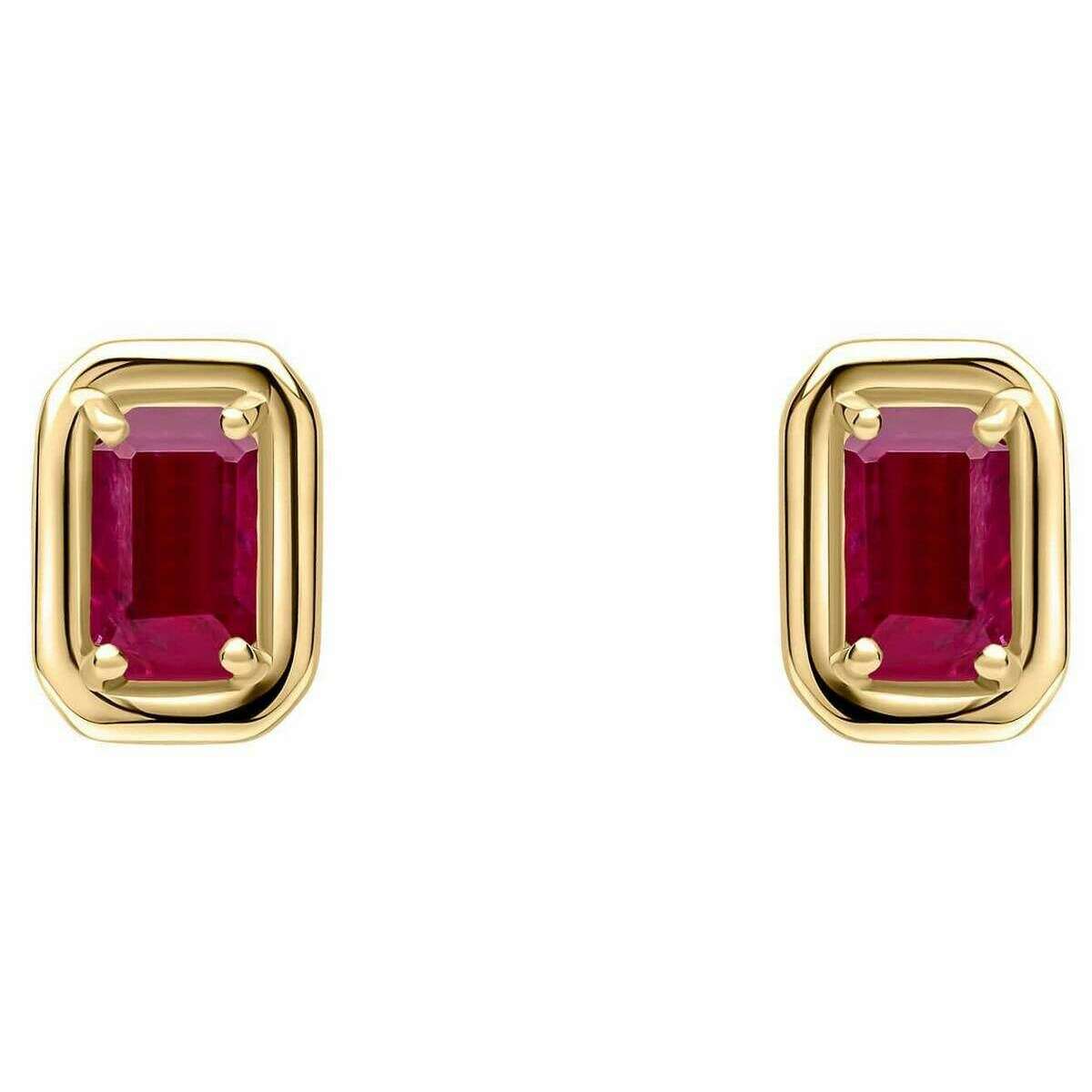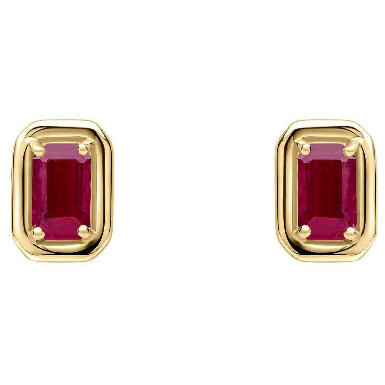 Elements Gold Ohrringe aus 9-karätigem Gold mit klobigem Rand-Rubin – Gold/Rot