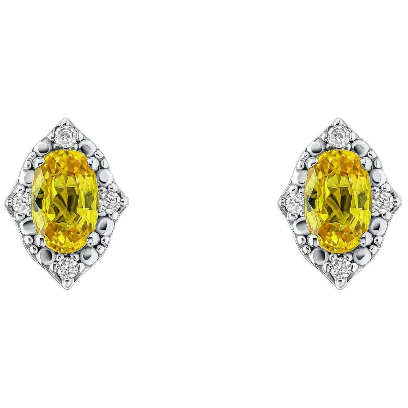 Elements Gold Ovale Ohrringe aus 9-karätigem Gold mit Saphir und Diamant – Gold/Gelb