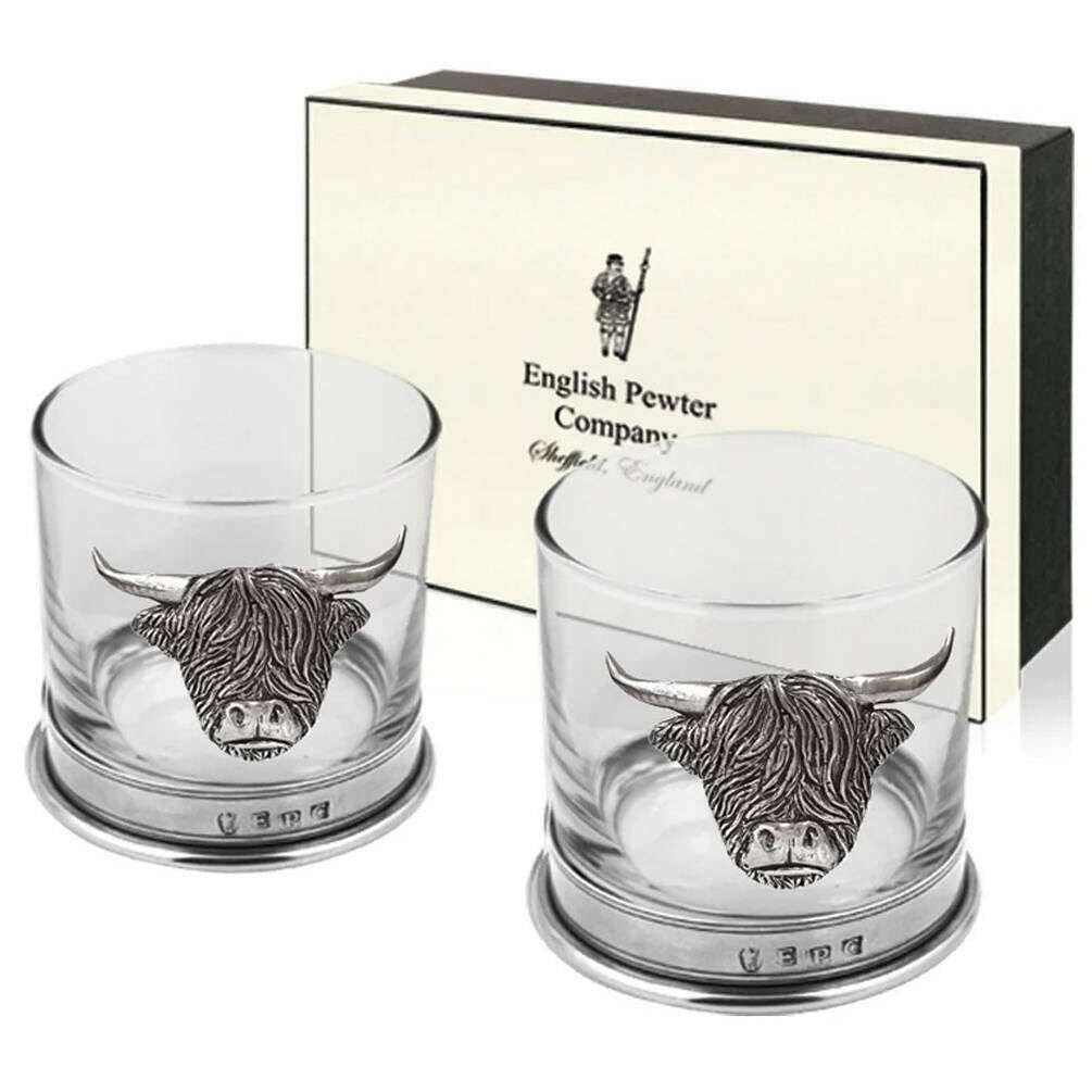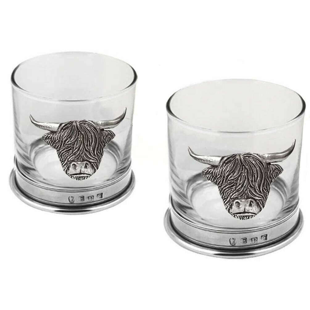 Englische Zinnfirma 11oz Doppelhochland Kuh Becher Set - Silber/Clear