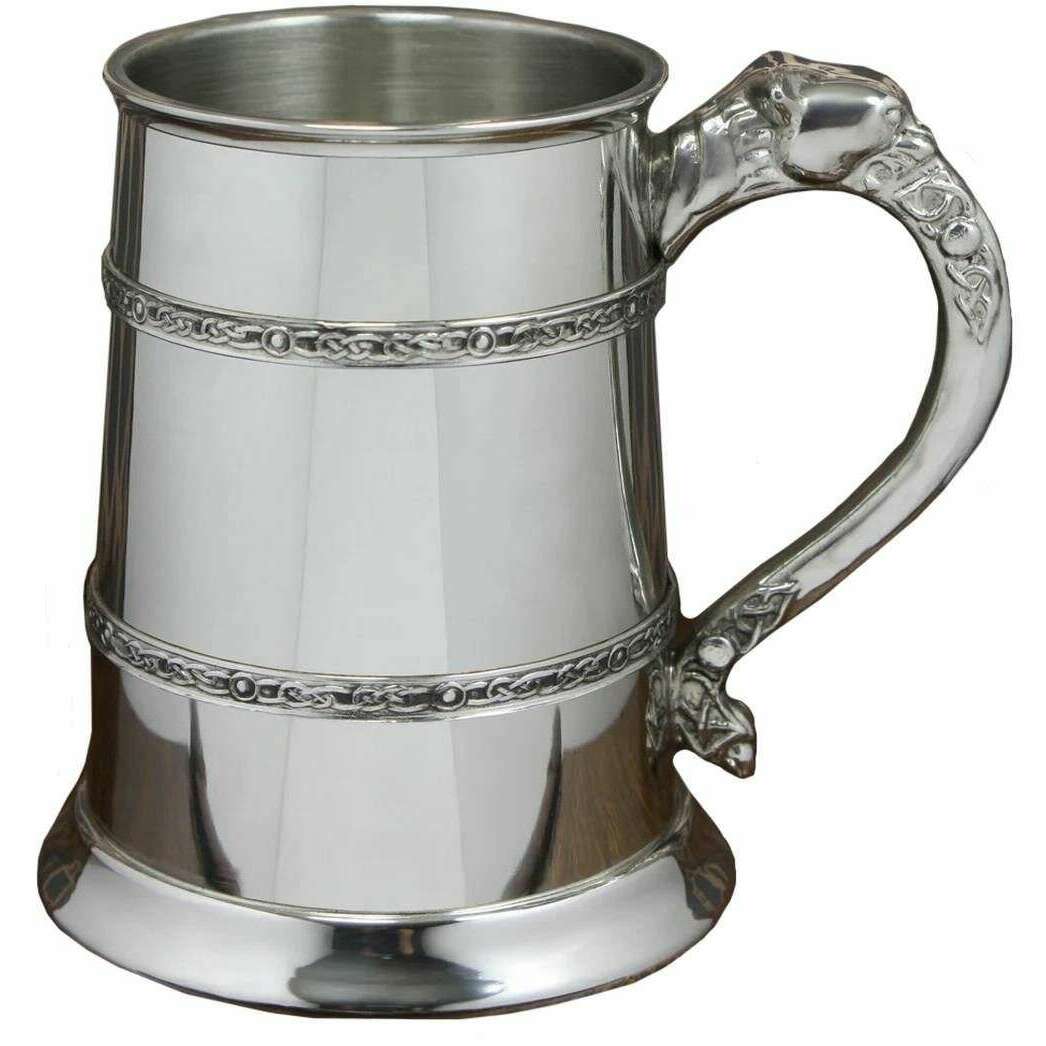 Englische Zinnfirma 1Pt Celtic Lion Griff Tankard - Silber
