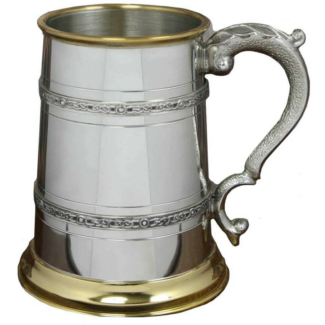 Englische Zinnfirma 1PT Celtic Tankard - Silber/Gold