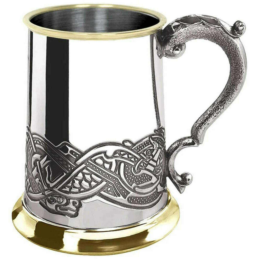 Englische Zinnfirma 1PT Celtic Tankard - Silber/Gold