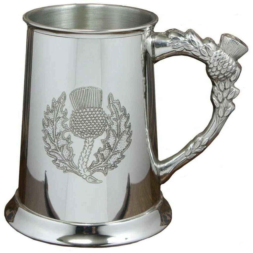 Englische Zinnfirma 1Pt geprägtes Distel Tankard - Silber