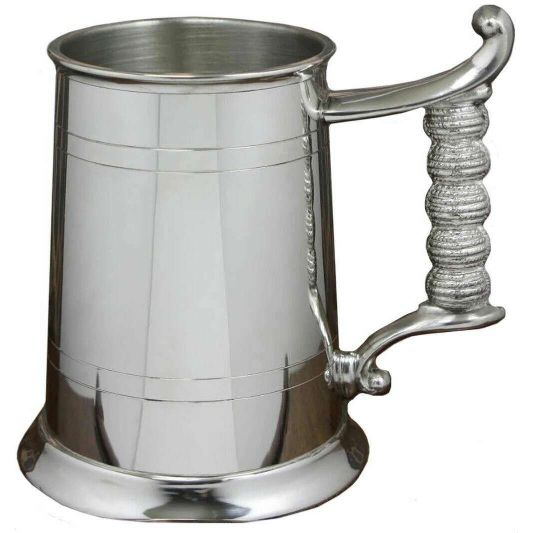 Englische Zinnfirma 1Pt Straight Seilhandle Tankard - Silber