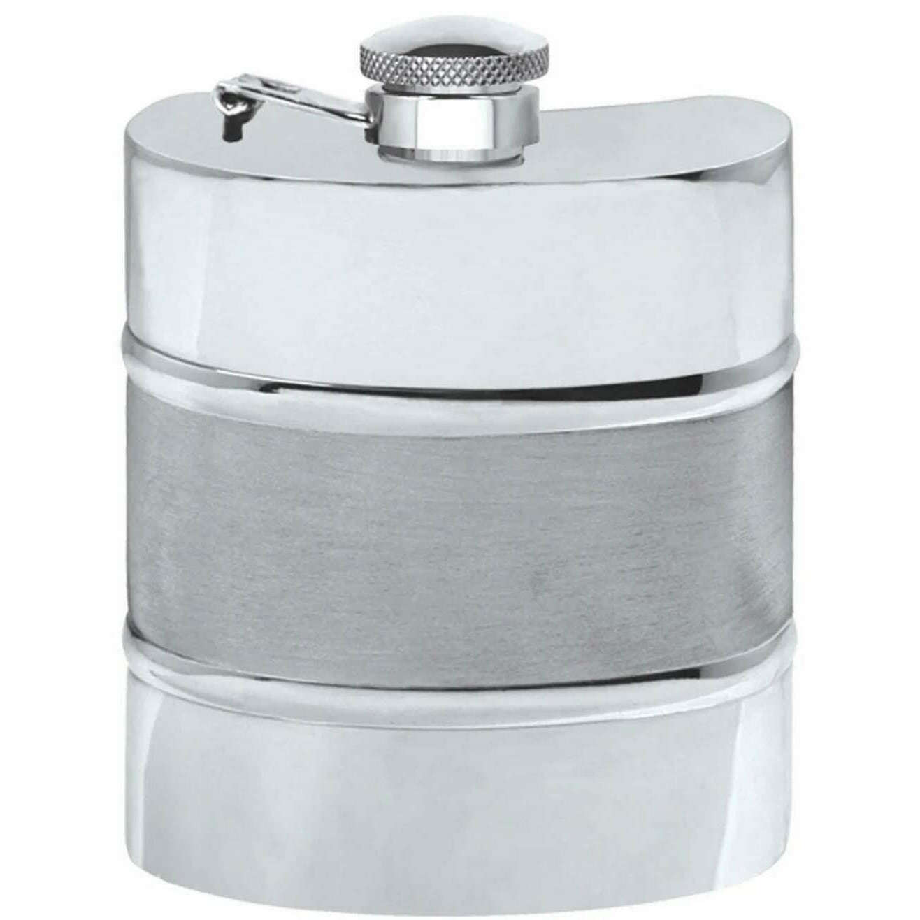 Englische Zinnfirma 6oz Captive Top Satin Band Flask - Silber
