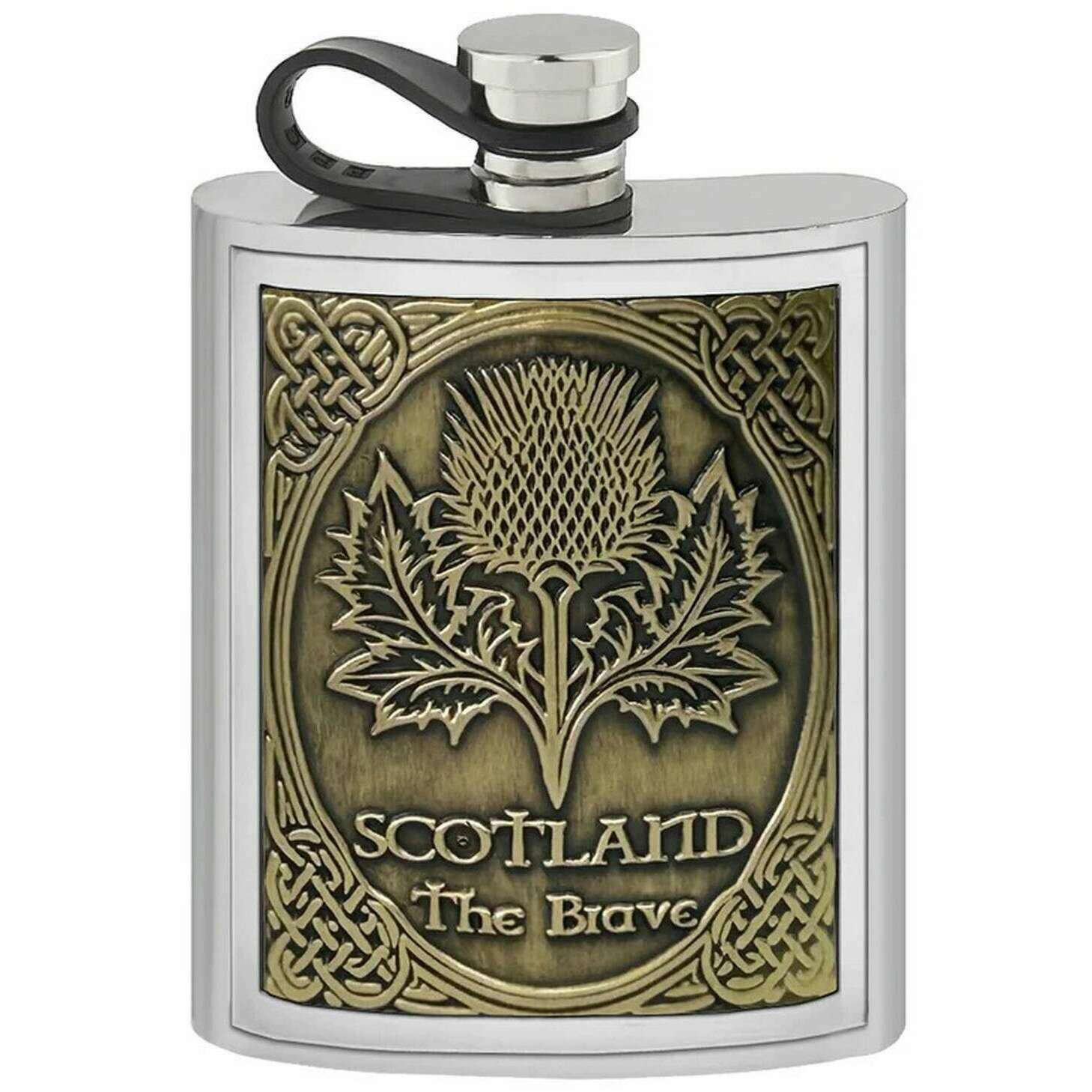 Englische Zinnfirma 6oz geprägte Distelzweige - Silber/Messing Gold