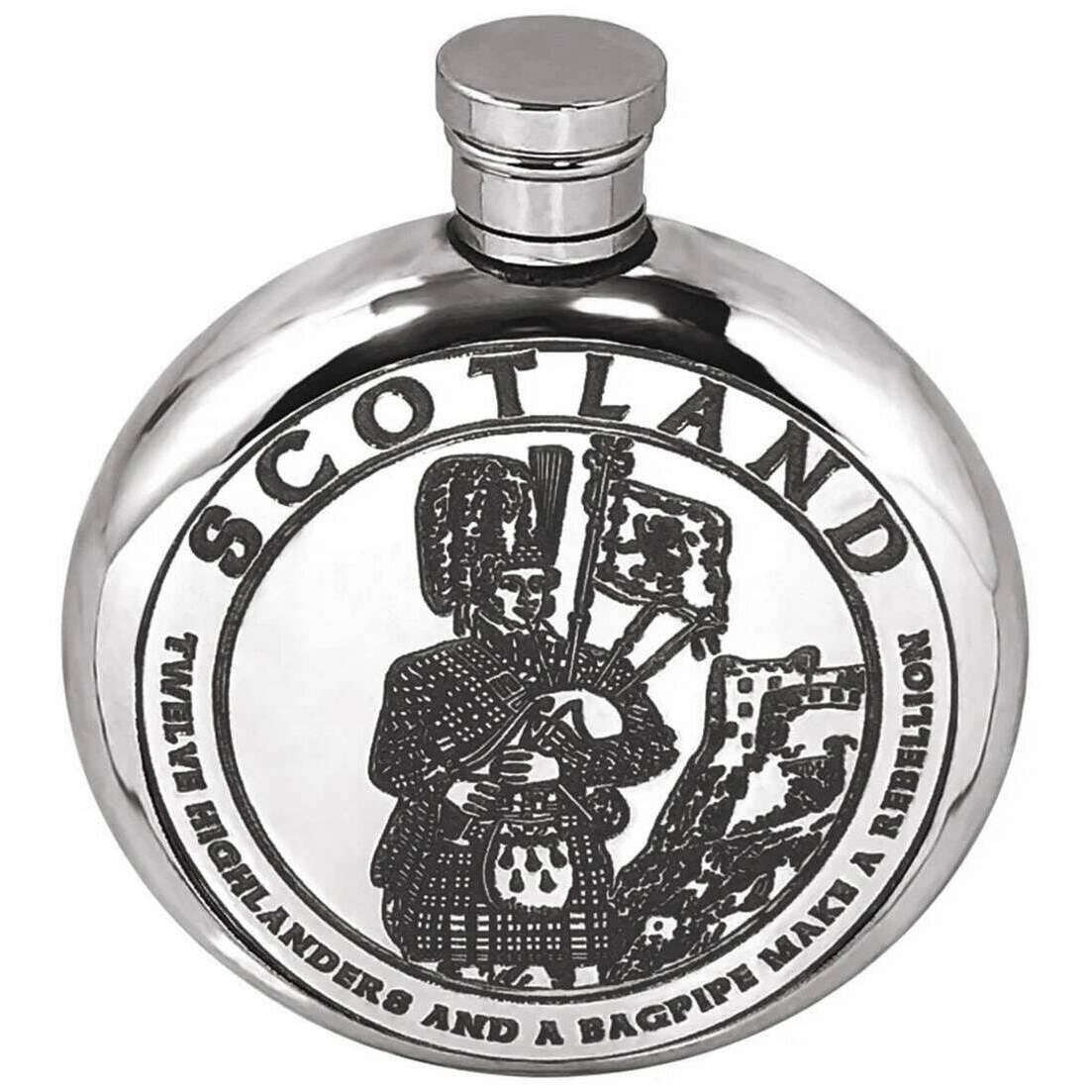 Englische Zinnfirma 6oz Highland Piper Flask - Silber