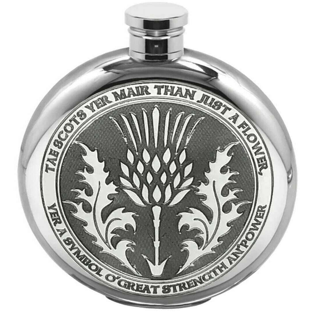 Englische Zinnfirma 6oz Tae A Distelrundflasche - Silber