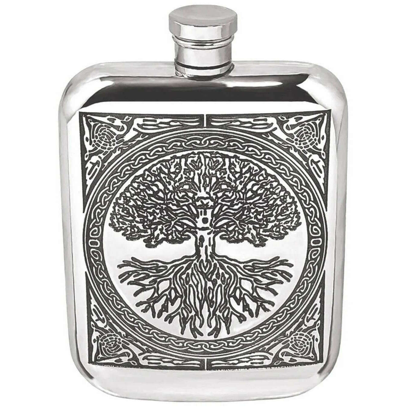 Englische Zinnfirma 6oz Baum des Lebens Geldbörse - Silber