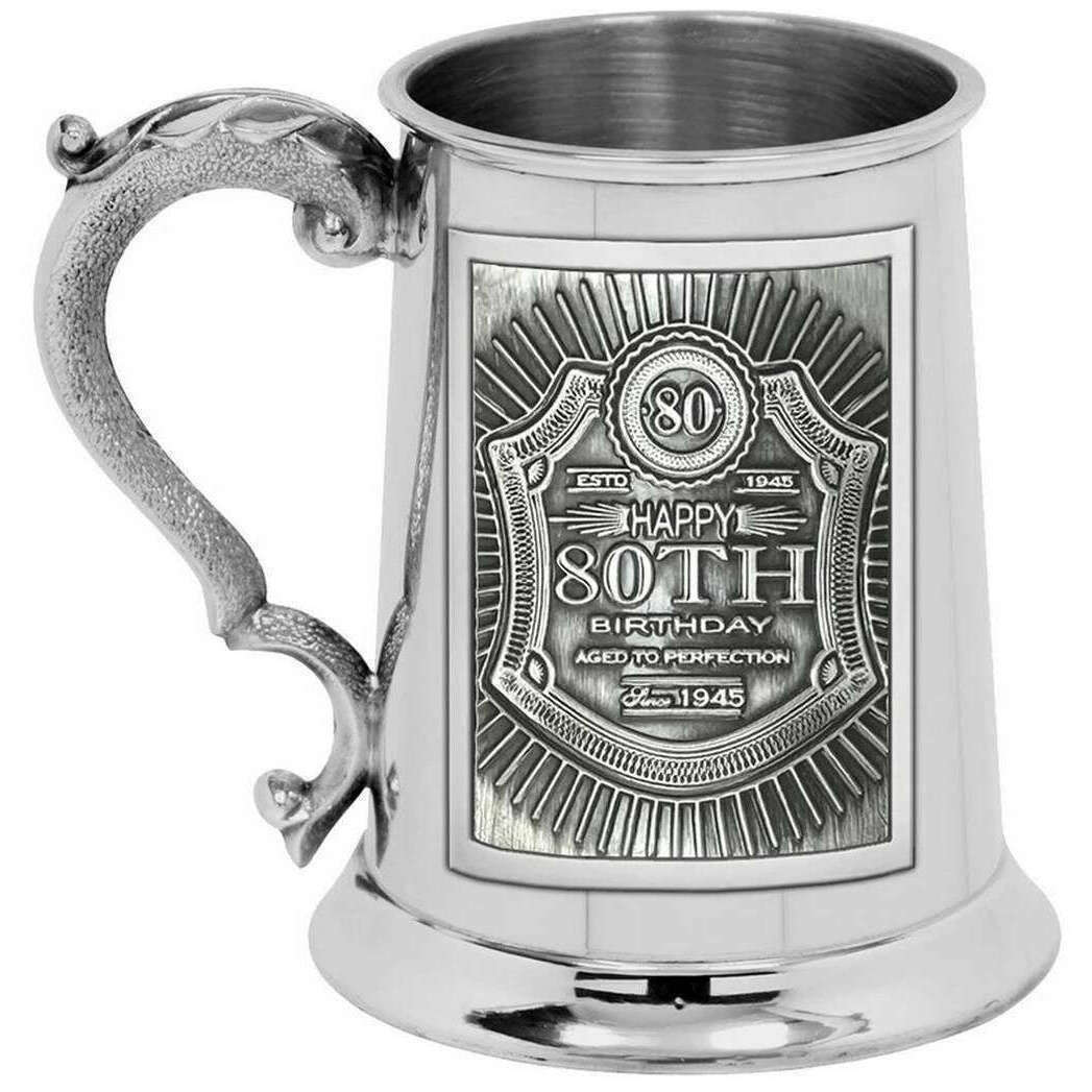 Dieser geprägte 80. Zinn 1 Pint Tankard für Männer oder Frauen wird von der Marke English Pewter Company in einer silbernen Farbe hergestellt und aus Zinn hergestellt. Es misst 12,75 cm (Höhe). Die englische Zinnfirma hat diesen geprägten 80. Zinn 1 Pint Tankard in Großbritannien gemacht. Die gesamte Getränke- und Glaswaren sind mit englischer Verpackung von Pewter Company ausgestattet. Die englische Zinnfirma hat den 80. Zinn 1 Pint Tankard geprägt - Silver ist das perfekte Geschenk für diesen besonderen Geburtstag. Es verfügt über einen robusten Griff mit einem komplizierten Design und bietet mit seinem gewichtigen Finish einen klassischen Attraktivität. Füllen Sie es mit Ihrem Lieblings -Bier oder Ihrem Craft Beer auf und setzen Sie einen Toast für den besonderen Anlass. Das hochwertige Material sorgt dafür, dass es zeitlosen Charme verleiht.