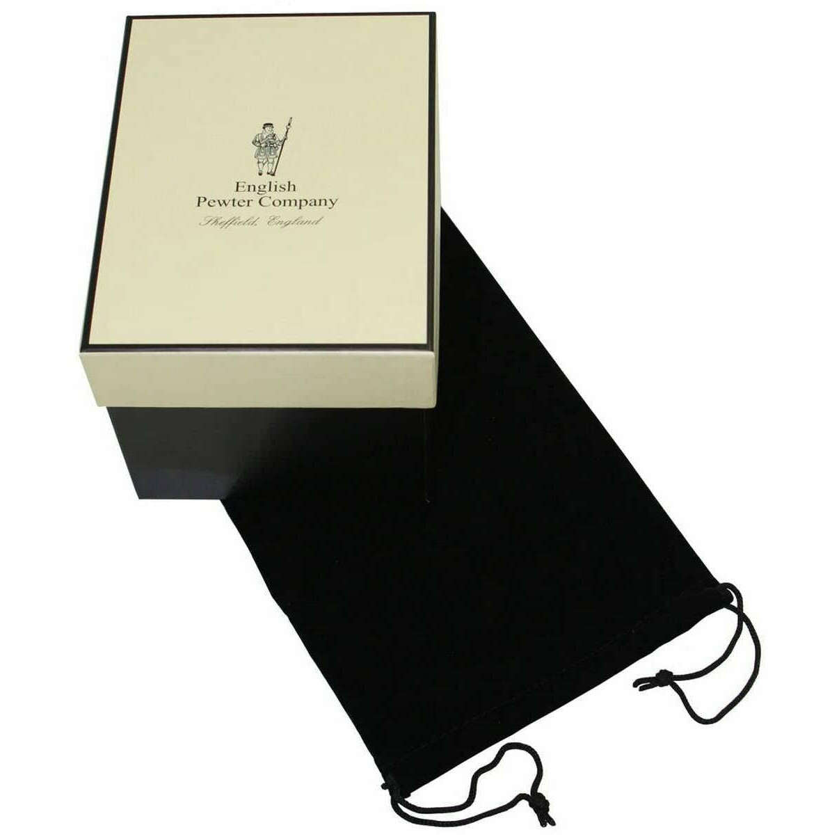 Dieser mittelgroße georgische Goblet für Männer oder Frauen wird von der Brand English Pewter Company in einer silbernen Farbe gestaltet und aus Zinn hergestellt. Es misst 12,7 cm (Höhe). Alle Getränke- und Glaswaren sind in einer englischen Geschenkbox mit Zinnfirmen abgeschlossen. Das englische Bachkaste mit Medium Georgian Goblet - Silber genießt ein feines Getränk, als ob Sie mit diesem zeitlosen georgischen Goblet im 18. Jahrhundert wären. Die anmutige, ausgestellte Schüssel und der schlanke Stiel bieten Ihnen eine perfekt ausgewogene Form, die auf Ihrem Esstisch umwerfend aussieht, und ein bestimmtes wichtiges für Ihre Getränkekollektion. Fügen Sie jeder Veranstaltung einen historischen Charme hinzu und stellen Sie sicher, dass Sie nicht enttäuscht sind.