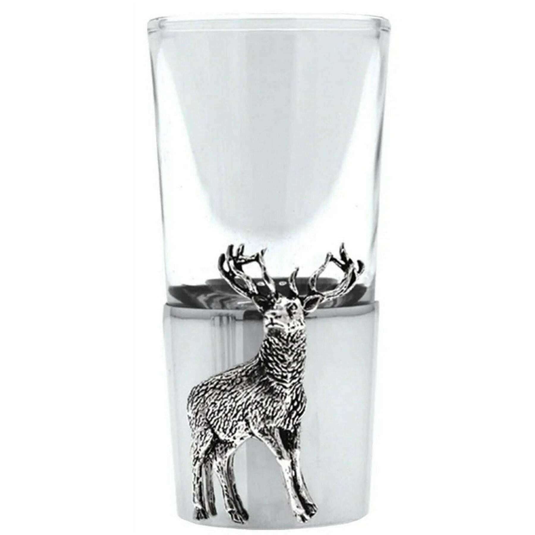 Dieses Hirschglas für Männer oder Frauen wird von der Marke English Pewter Company in einer klaren Farbe hergestellt und aus Zinn und Glas hergestellt. Es misst 8 cm (Höhe). Die englische Zinnfirma hat dieses Hirschglas in Großbritannien gemacht. Die gesamte Getränke- und Glaswaren sind mit englischer Verpackung von Pewter Company ausgestattet. Die englische Pewter Company Stag SHOT Glass - Silver/Clear ist das perfekte Stück, um Ihre Lieblingsgeister zu besonderen Anlässen zu fotografieren. Wenn Sie Ihr Trinkerlebnis verbessern möchten, suchen Sie nicht weiter. Das wunderschöne Zinndetail eines Hirsches erhöht die Ästhetik und die Glasrunde wunderschön.