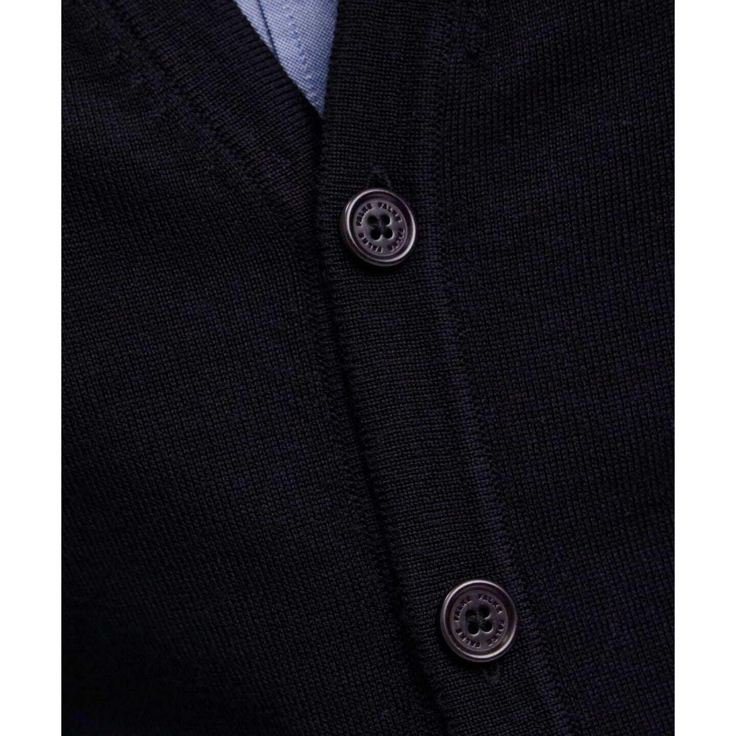 • Jersey-Strick, französische Schulternähte, gerippte Knopfleiste, elastische Rippbündchen an Rumpf und Ärmeln, Mulesing-freie Merinowolle, normale Passform