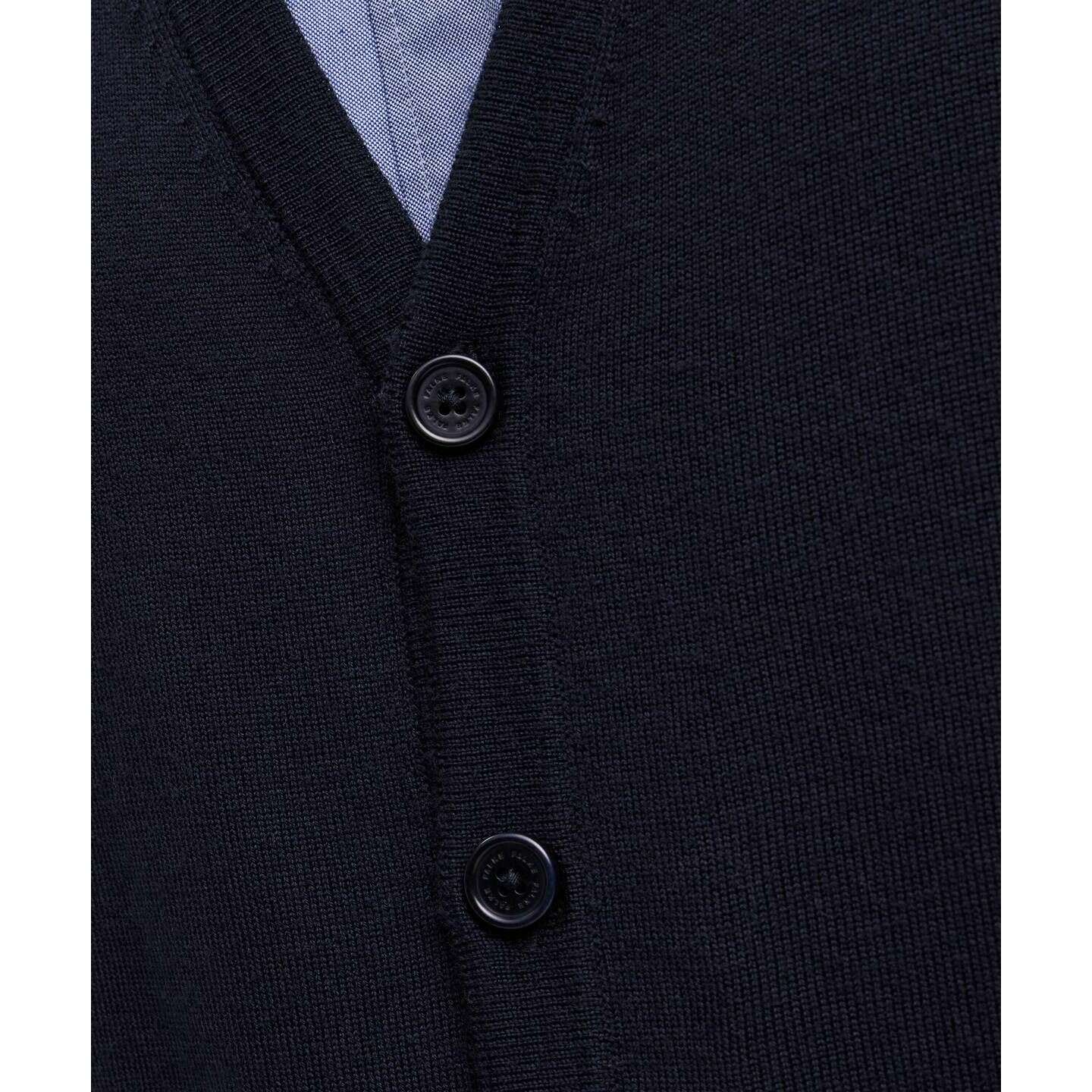 • Jersey-Strick, französische Schulternähte, gerippte Knopfleiste, elastische Rippbündchen an Rumpf und Ärmeln, Mulesing-freie Merinowolle, normale Passform