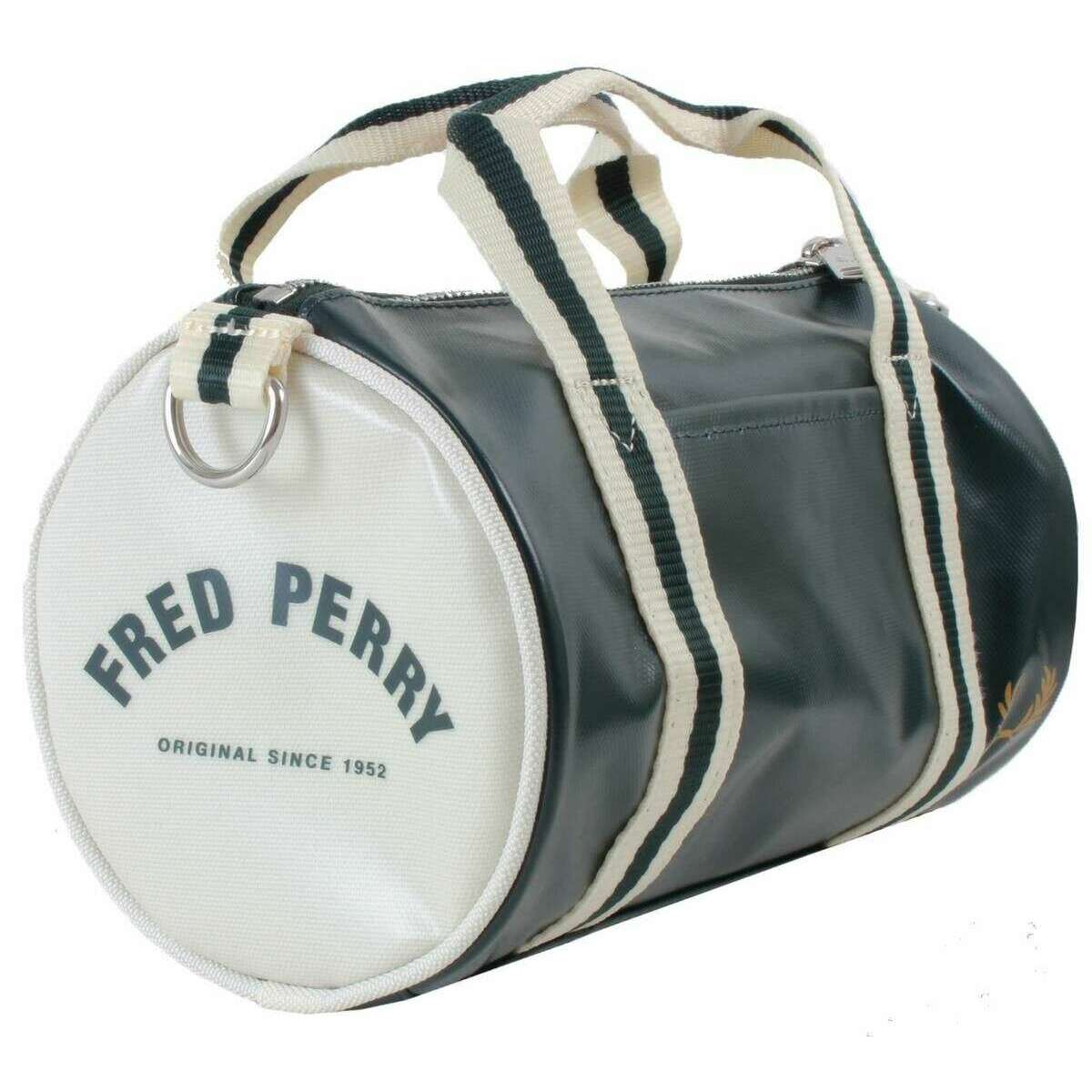Fred Perry Mini Classic Barrel Bag – Graswurzelgrün/Ecru-Creme
