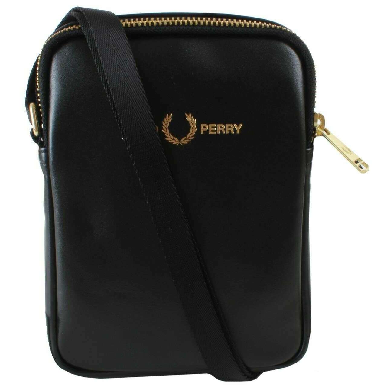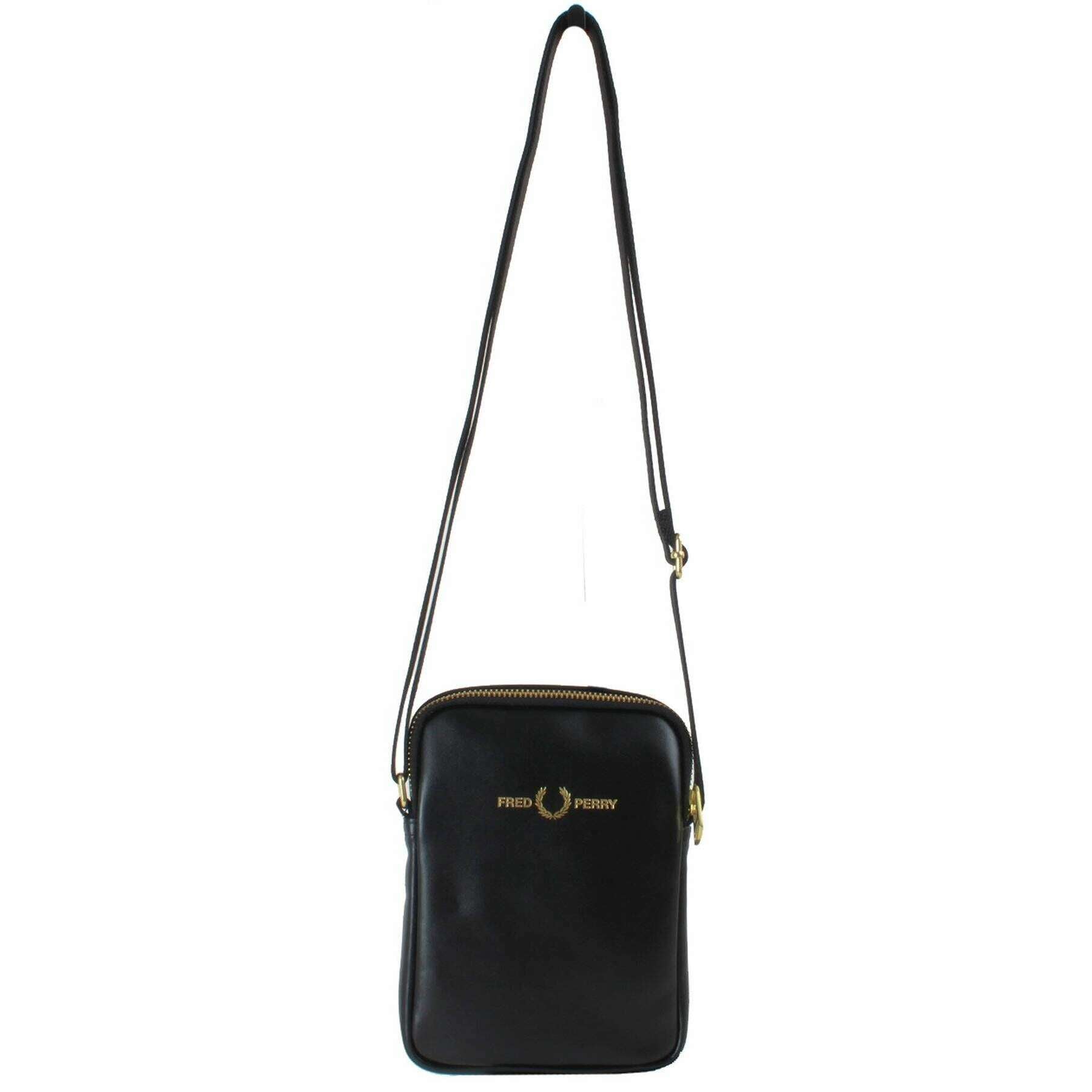 Fred Perry Kleine Seitentasche aus Glattleder – Schwarz