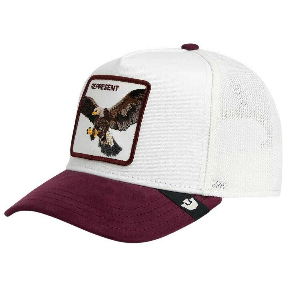 Goorin Bros Wildleder Eagle Trucker-Mütze – Staubweiß/Desire-Rot
