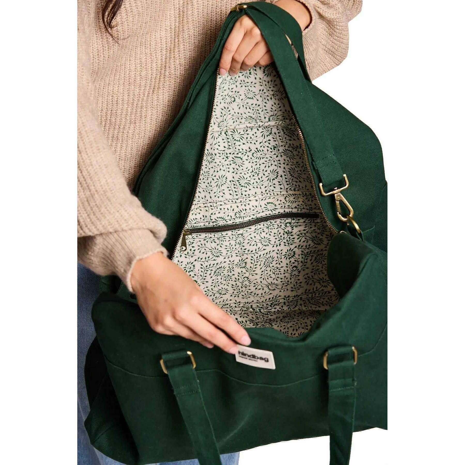 Dieser Unisex Yves Large Reisetasche wurde aus 100% Bio -Baumwolle hergestellt, die in einer grünen Farbe vorgestellt und aus der Marke Hindbag stammt. Es misst 33 cm (Höhe) x 54 cm (Breite) x 24 cm (Tiefe). Alle Taschen sind mit Hinterbeutelverpackungen ausgestattet. Der Hindbag Yves Large Reisetasche - Forest Green ist eine geräumige und umweltfreundliche Option für Reisende. Diese Tasche, die aus dickem gefertigtem organische Bio-Baumwolle gefertigt ist, verfügt über mehrere Taschen für die Organisation, einen sicheren Reißverschluss und ein gedrucktes Innenfutter, das einen Hauch von Eleganz verleiht. Mit seinen Griffen und einem großen verstellbaren Schultergurt kann diese Tasche leicht von Hand oder auf der Schulter getragen werden.
