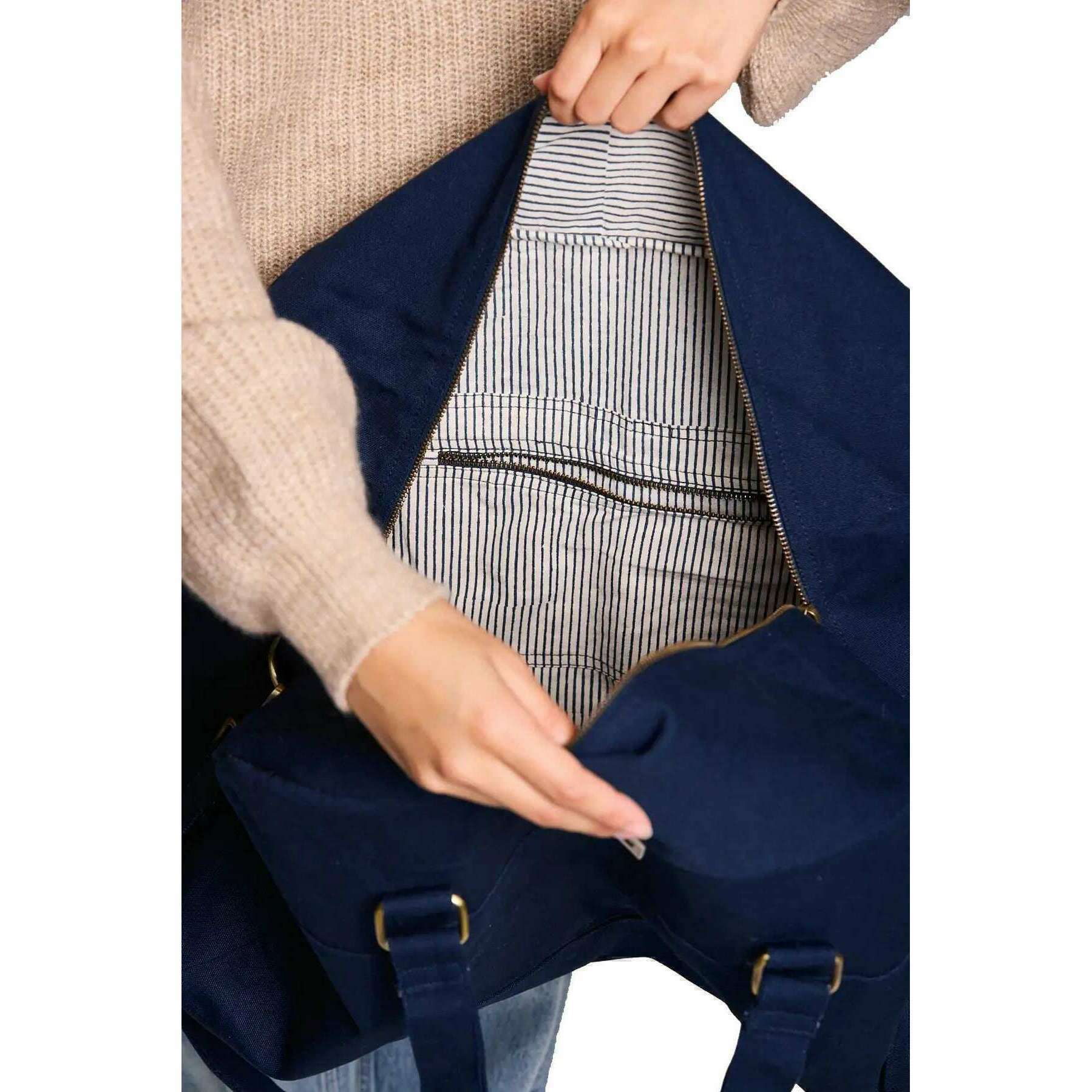 Diese Yves große Reisetasche für Männer oder Frauen wird in einer blauen Farbe von der Marke Hindbag hergestellt und aus 100% Bio -Baumwolle hergestellt. Es misst 33 cm (Höhe) x 54 cm (Breite) x 24 cm (Tiefe). Alle Taschen sind mit Hinterbeutelverpackungen ausgestattet. Die Hindbag Yves Large Reisetasche - Marineblau ist eine geräumige und umweltfreundliche Option für Reisende. Diese Tasche, die aus dickem gefertigtem organische Bio-Baumwolle gefertigt ist, verfügt über mehrere Taschen für die Organisation, einen sicheren Reißverschluss und ein gedrucktes Innenfutter, das einen Hauch von Eleganz verleiht. Mit seinen Griffen und einem großen verstellbaren Schultergurt kann diese Tasche leicht von Hand oder auf der Schulter getragen werden.