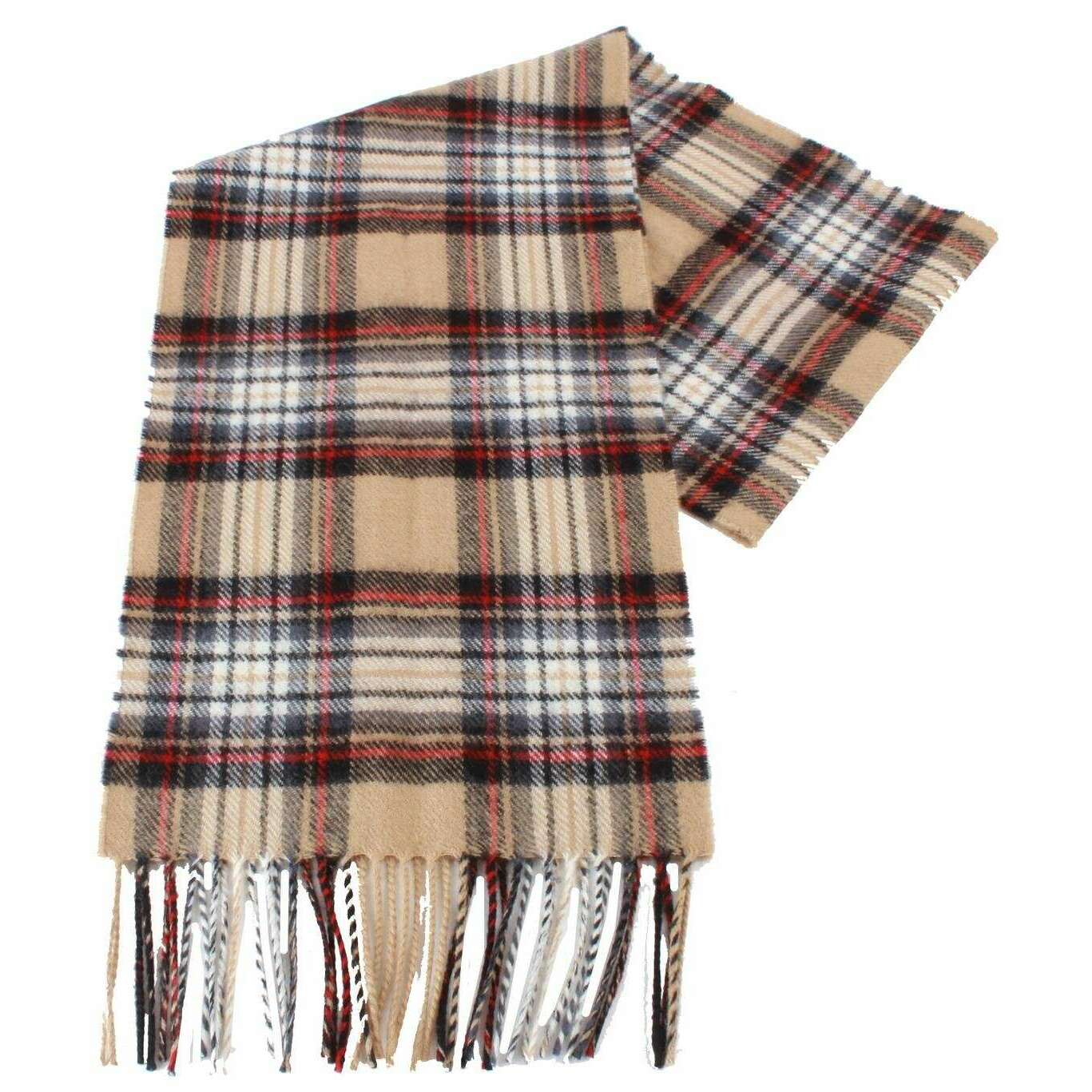 Ingles Buchan Stewart Camel Moderner Lammwollschal – Beige/Schwarz/Rot
