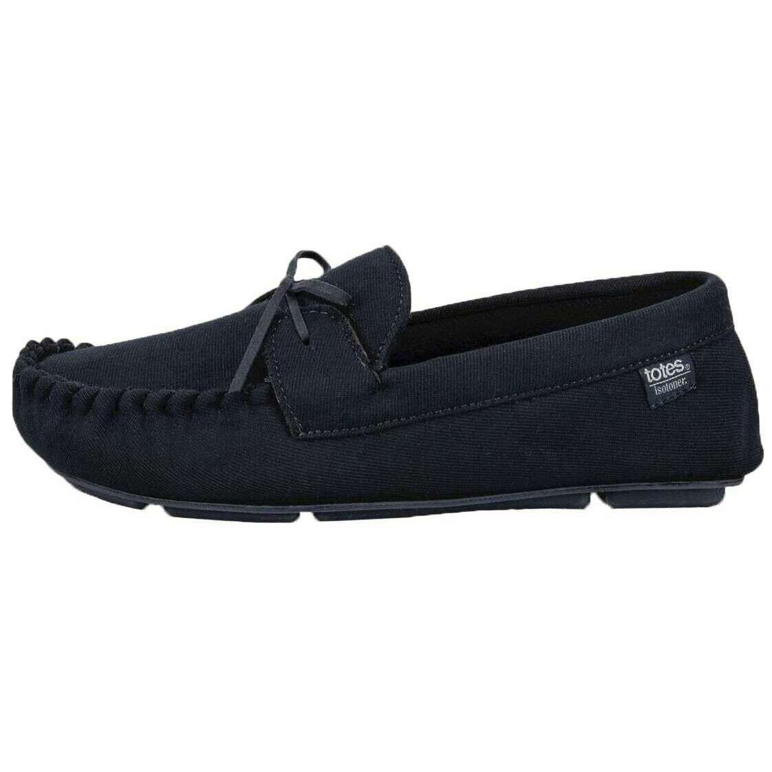 Isotoner Mokassin-Hausschuhe mit Fischgrätenmuster – Marineblau