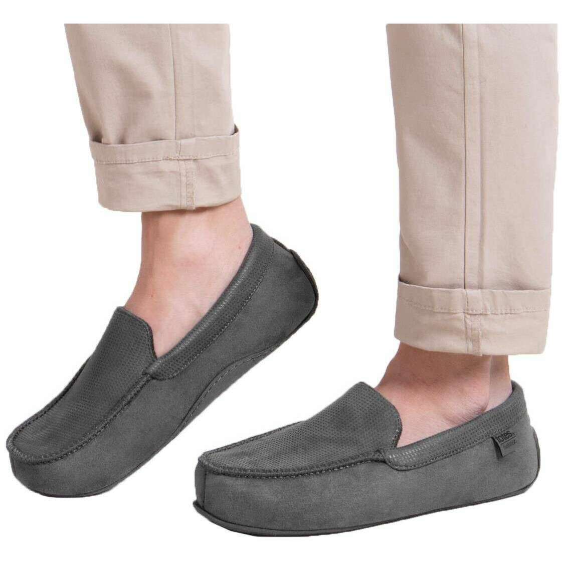 Diese eleganten Mokassin-Slipper für Herren mit quadratischem Muster der Marke Isotoner bestehen aus 100 % Polyester und sind in Grau gehalten. Auch die grauen Hausschuhe sind in einem schlichten Muster gestaltet. Es wird empfohlen, sie bei 30 Grad in der Maschine zu waschen, um diese Hausschuhe in gutem Zustand zu halten. Alle Hausschuhe werden komplett mit Isotoner-Verpackung geliefert. Die Isotoner Square Patterned Smart Mokassin-Hausschuhe – Grau sind ein Muss für jeden Gentleman und bieten außergewöhnlichen Komfort, Halt und Wärme! Mit Komfort-Memory-Schaum und Pillow-Step-Dämpfungstechnologie mit Schaumstoffschicht fühlen Sie sich, als würden Sie auf Wolken laufen, mit einer langlebigen Fahrsohle. Dieser Mokassin-Stil hält Ihre Füße dank der weichen Materialien und der Abdeckung des Fußes angenehm warm und verfügt gleichzeitig über eine leicht atmungsaktive Oberseite.