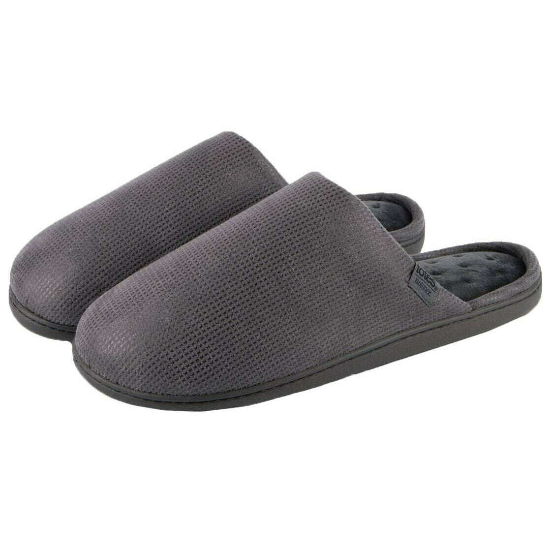 Diese eleganten Pantoffeln für Herren mit quadratischem Muster der Marke Isotoner bestehen aus 100 % Polyester und sind in Grau gehalten. Auch die grauen Hausschuhe sind in einem schlichten Muster gestaltet. Es wird empfohlen, sie bei 30 Grad in der Maschine zu waschen, um diese Hausschuhe in gutem Zustand zu halten. Alle Hausschuhe werden komplett mit Isotoner-Verpackung geliefert. Die Isotoner Square Patterned Smart Mule Slipper – Grau sind ein Muss für jeden Gentleman und bieten außergewöhnlichen Komfort, Halt und Wärme! Ausgestattet mit 360-Surround-Komfort-Memory-Schaum und Pillow-Step-Dämpfungstechnologie mit einer Schaumstoffschicht werden Sie sich fühlen, als würden Sie auf Wolken laufen, dank der Fersen- und Fußgewölbeunterstützung und der langlebigen Ergo-Dot-Sohle, die für rutschfestes Tragen sorgt. Dieser Mule-Stil hält Ihre Füße dank der weichen Materialien und der Abdeckung des Fußes angenehm warm und ist gleichzeitig atmungsaktiv und hat eine offene Rückseite.