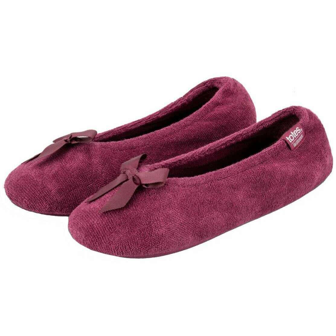 Isotoner Terry Ballerina-Hausschuhe – Burgund