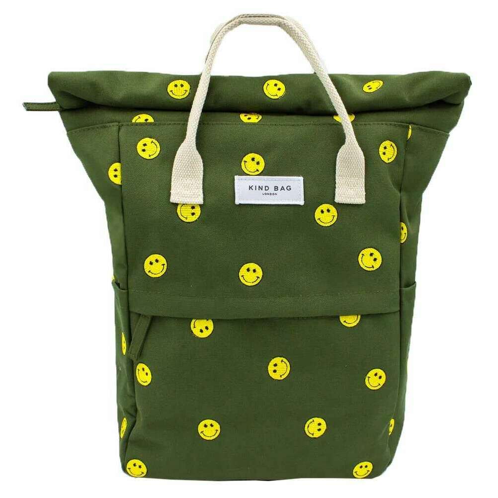 Art Tasche London Hackney bestickter mittlerer Rucksack - Khaki Green Smile