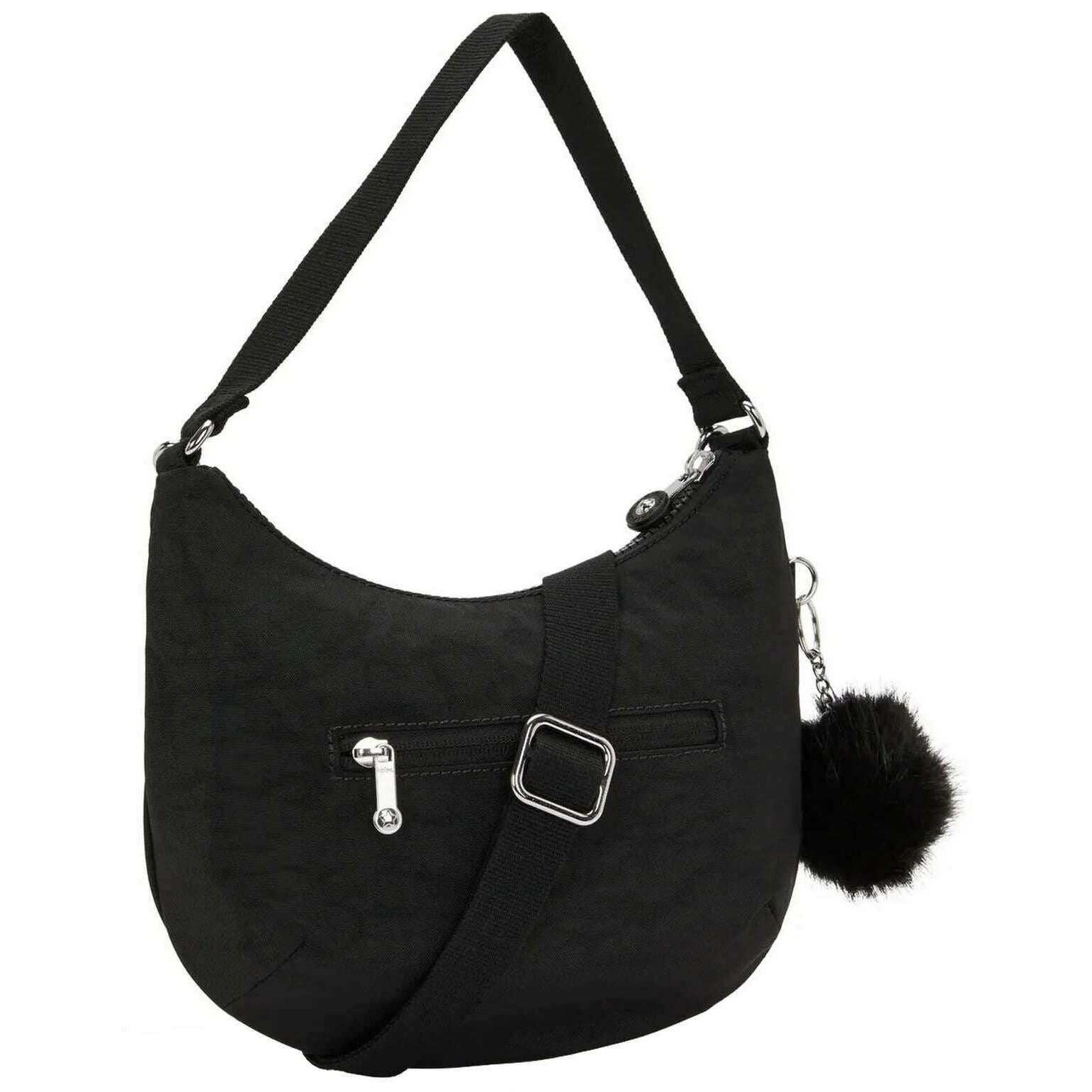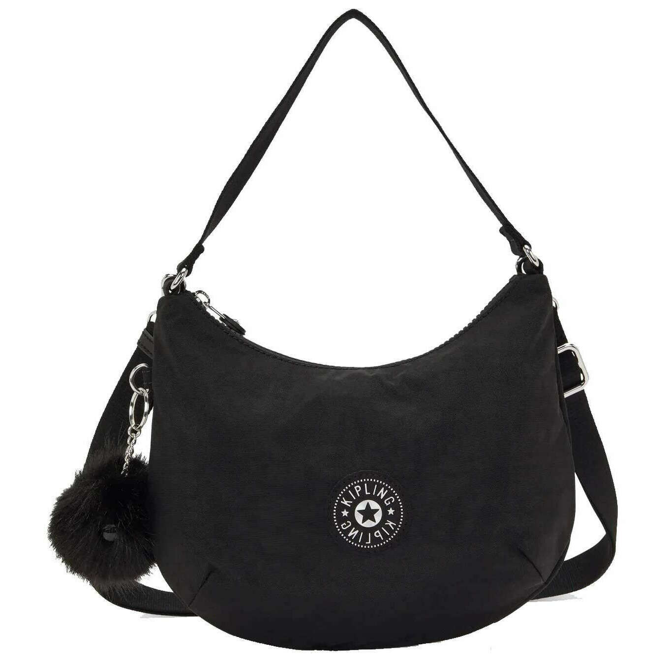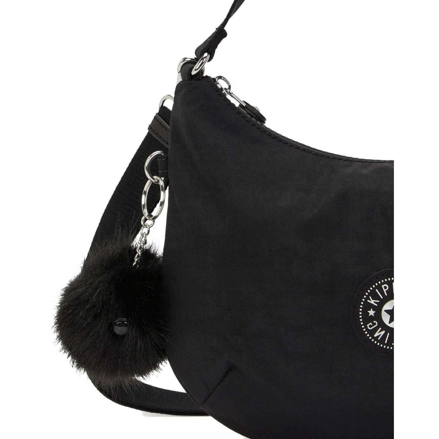 Diese Amani-Umhängetasche für Damen der Marke Kipling besteht zu 100 % aus recyceltem Polyester und ist in Schwarz gehalten. Es misst 22 cm (Höhe) x 26,5 cm (Breite) x 10 cm (Tiefe). Alle Taschen werden komplett mit einer Kipling-Verpackung geliefert. Die Kipling Amani Shoulder Bag - Black GG F25 ist eine schicke, halbmondförmige Umhängetasche für den modernen Alltagsgebrauch. Diese Umhängetasche verfügt über eine interne Reißverschlusstasche und eine hintere Reißverschlusstasche zur Aufbewahrung all Ihrer Gegenstände und bietet zwei Riemenoptionen: einen kurzen Schulterriemen und einen längeren verstellbaren und abnehmbaren Riemen, sodass Sie sie als Umhängetasche oder Umhängetasche tragen können. Der charakteristische Affen-Schlüsselanhänger verleiht dieser Tasche eine verspielte Note.