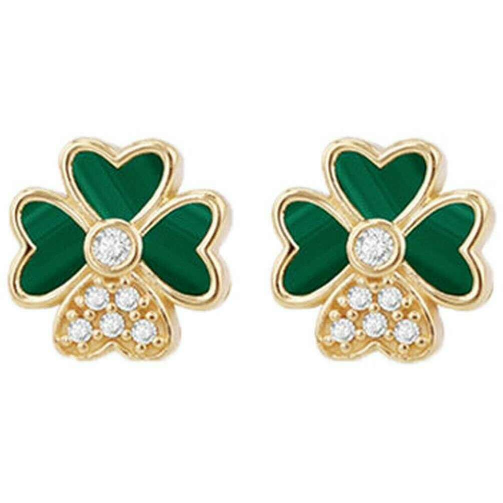KJ Beckett Malachit-Klee-Ohrstecker – Gelbgold/Grün