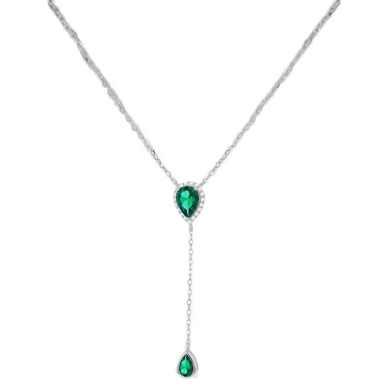 KJ Beckett Tropfenförmige verstellbare Lariat-Halskette – Silber/Grün