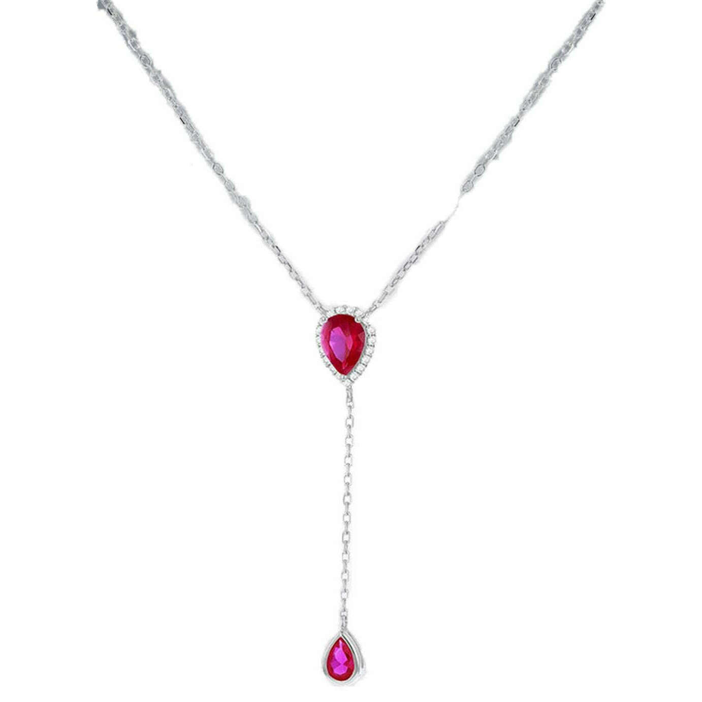 KJ Beckett Tropfenförmige verstellbare Lariat-Halskette – Silber/Rot