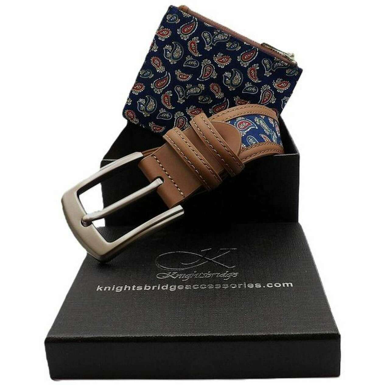 Knightsbridge Neckwear Buckingham Paisley-Gürtel- und Geldbörsen-Set – Braun