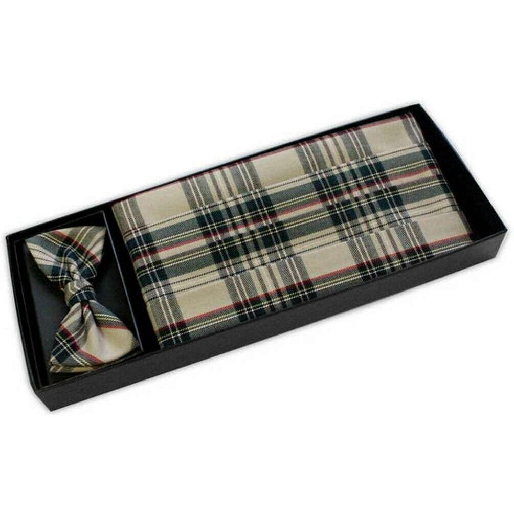 Knightsbridge Neckwear Tartan-Kummerbund- und Fliege-Set – Beige
