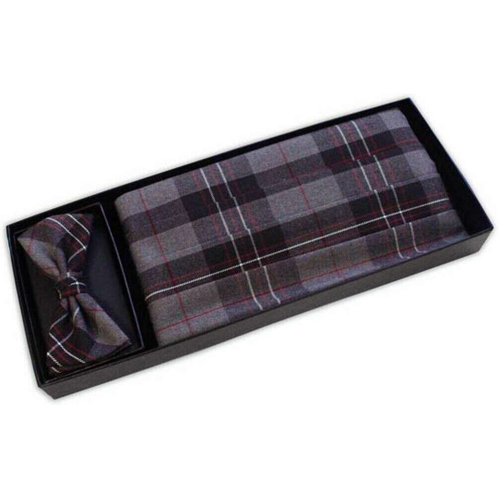Knightsbridge Neckwear Set aus Kummerbund und Fliege mit Schottenmuster – Grau