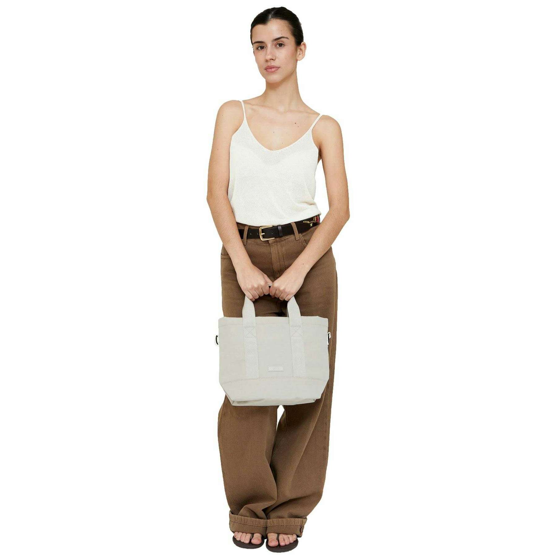 Diese Strata Mini-Tragetasche für Damen der Marke Lefrik besteht aus 100 % veganem Oxford-Rpet-Polyester und ist in Grau gehalten. Es misst 34,5 cm (Höhe) x 26 cm (Breite) x 11 cm (Tiefe). Es wird empfohlen, die Tasche kalt zu waschen und an der Luft zu trocknen, um sie in gutem Zustand zu halten. Alle Taschen werden komplett mit Lefrik-Verpackung geliefert. Die Lefrik Strata Mini Tote Bag – Fossil Grey vereint Funktionalität mit Mode. Diese Mini-Tragetasche ist mit mittlerem Fassungsvermögen für den täglichen Gebrauch konzipiert. Das Hauptfach wird mit einem Reißverschluss verschlossen und verfügt über zwei separate Innentaschen zur Organisation kleiner Gegenstände. Ausgestattet mit einer Innentasche mit Reißverschluss zur Aufbewahrung, verfügt diese nachhaltige Tasche über einen abnehmbaren Riemen, egal ob Sie sie lieber an den Griffen tragen oder über der Schulter tragen.