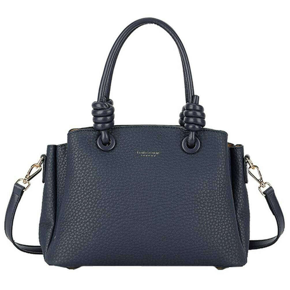 Diese Umhängetasche mit Knoten von Long and Son aus marineblauem 100 % Polyurethan ist perfekt für Frauen und ein Muss. Es misst 20 cm (Höhe) x 28 cm (Breite) x 13 cm (Tiefe). Alle Taschen werden komplett in einer Long & Son-Verpackung geliefert. Die Long and Son Knot Umhängetasche – Marineblau verfügt über einen großen Innenraum mit einer offenen Reißverschlusstasche, zusätzlichen Fächern auf beiden Seiten des Reißverschlusses, die mit Magnetverschlüssen für zusätzlichen Stauraum zusammengehalten werden, und Fußnieten zum Schutz beim Ablegen. Mit den beiden Tragegriffen und dem abnehmbaren, verstellbaren Umhängeriemen kann diese Tasche sowohl als Umhängetasche als auch als Handtasche verwendet werden. Aufgrund der Vielseitigkeit und optimalen Aufbewahrung eignet sie sich hervorragend als Alltagstasche.