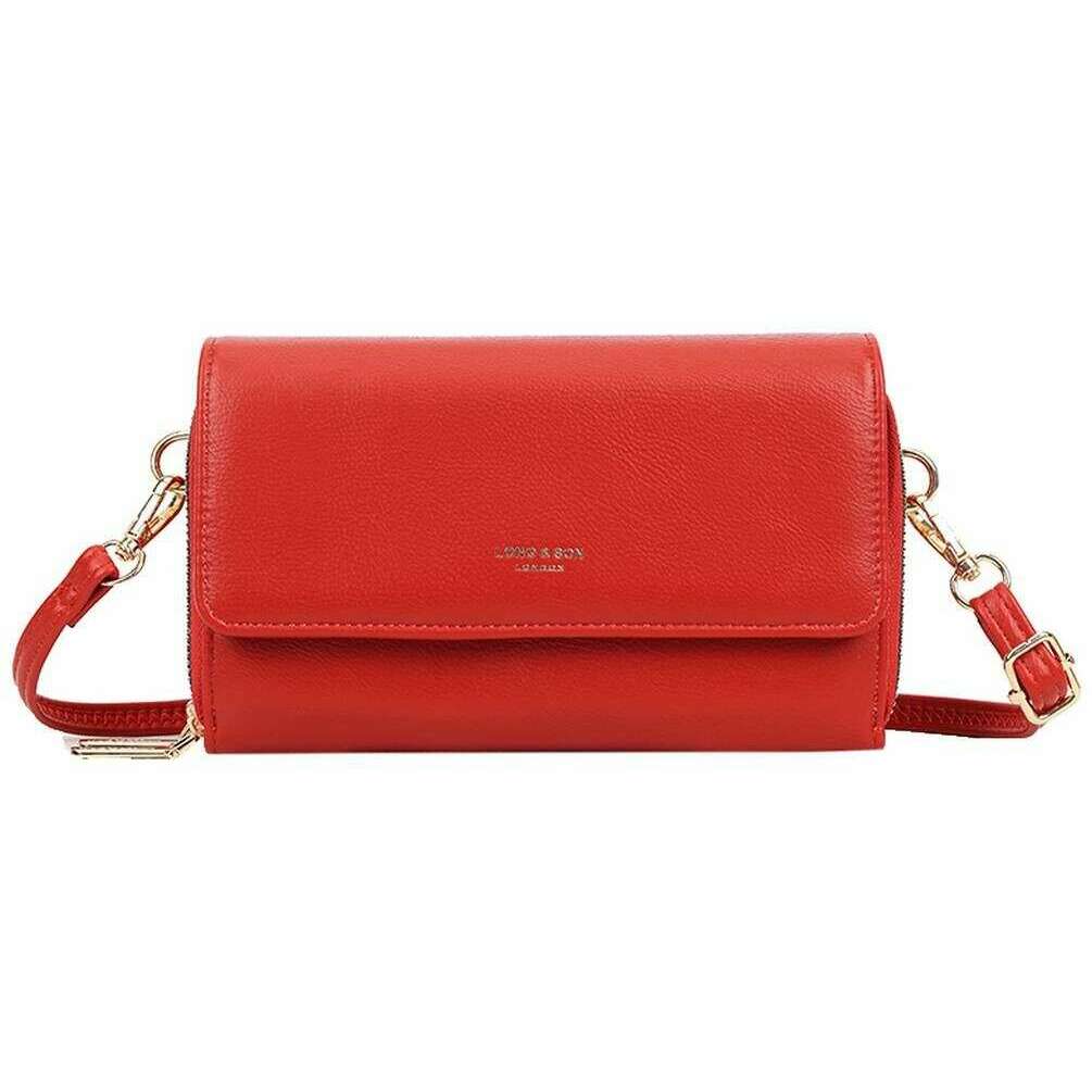 Diese Damen-Umhängetasche der Marke Long and Son besteht aus 100 % Polyurethan und ist in Rot gehalten. Es misst 12,5 cm (Höhe) x 20 cm (Breite) x 5 cm (Tiefe). Alle Taschen werden komplett in einer Long & Son-Verpackung geliefert. Die Long and Son Purse Umhängetasche – Rot ist ein Must-Have, wenn Sie leicht tragen. Mit mehreren Fächern für Ihre kleineren Gegenstände, sechs Kartenfächern und einem Geldscheinfach, damit Sie keine Handtasche einpacken müssen. Der kleine und kompakte Stil eignet sich hervorragend für leichtes Tragen und der abnehmbare, verstellbare Riemen ermöglicht das Tragen als Umhängetasche oder über der Schulter und dient gleichzeitig als Clutch. Komplett mit dezentem Long & Son-Branding.