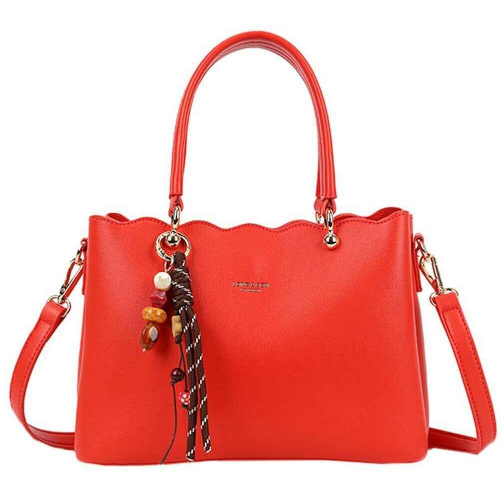 Diese rote Damen-Umhängetasche mit Wellenkanten des Designers Long and Son besteht zu 100 % aus Polyurethan. Es misst 18 cm (Höhe) x 24,5 cm (Breite) x 11 cm (Tiefe). Alle Taschen werden komplett in einer Long & Son-Verpackung geliefert. Die Long and Son Scalloped Edge Umhängetasche – Rot verfügt über einen großen Innenraum mit Taschen, zusätzlichen Fächern auf beiden Seiten des Reißverschlusses, die mit Magnetverschlüssen für zusätzlichen Stauraum zusammengehalten werden, und Fußnieten zum Schutz beim Ablegen. Mit den beiden Tragegriffen und dem abnehmbaren, verstellbaren Umhängeriemen kann diese Tasche sowohl als Umhängetasche als auch als Handtasche verwendet werden. Aufgrund der Vielseitigkeit und optimalen Aufbewahrung eignet sie sich hervorragend als Alltagstasche. Komplettiert mit Wellendetails für einen mädchenhaften Touch.
