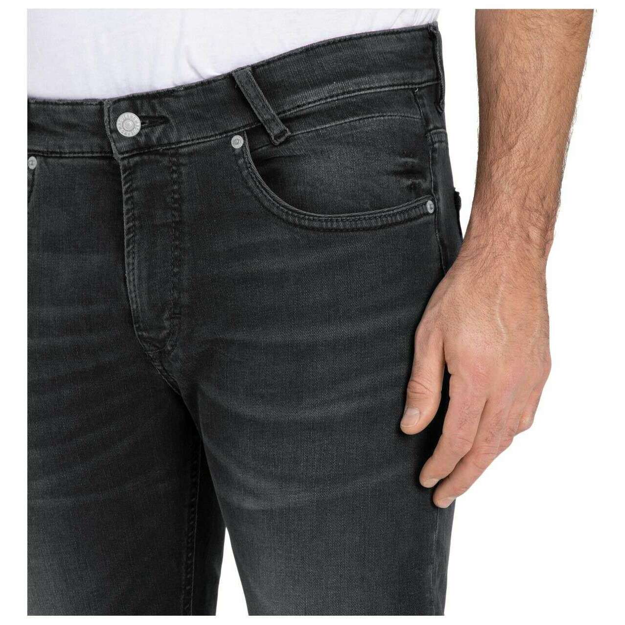 Diese Arne Pipe Drivers-Jeans für Herren der Marke MAC Jeans besteht aus 93 % Baumwolle, 5 % Elastomultiester und 2 % Elastan und ist in Schwarz gehalten. Auch die schwarzen authentischen Used-Jeans sind in einem schlichten Muster gestaltet. Es wird empfohlen, sie bei 40 Grad zu waschen, um diese Jeans in gutem Zustand zu halten. Alle Jeans werden komplett mit Mac-Jeans-Etiketten geliefert. Die MAC Jeans Arne Pipe Drivers Jeans – Black Authentic Used bieten einen raffinierten und dennoch robusten Look mit modernem Reiz. Sie haben eine moderne Passform mit geradem, schmalem Bein und sorgen für eine schlanke Silhouette bei gleichzeitigem Tragekomfort im Alltag. Sie bestehen aus Stretch-Denim mit hoher Elastizität und ermöglichen Bewegungsfreiheit, ohne die Form zu beeinträchtigen. Die maskuline, körnige Textur verleiht Charakter und Tiefe und macht diese Jeans zu einer selbstbewussten Wahl für moderne Casual-Stylings.