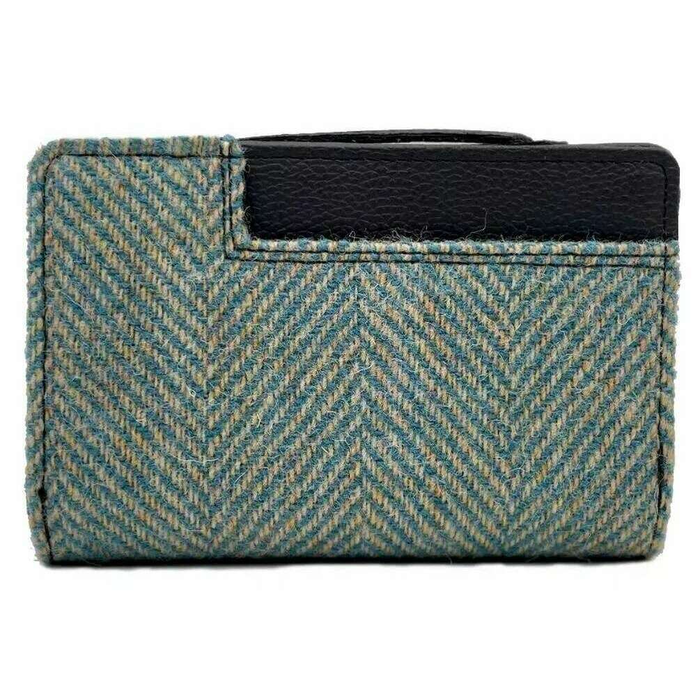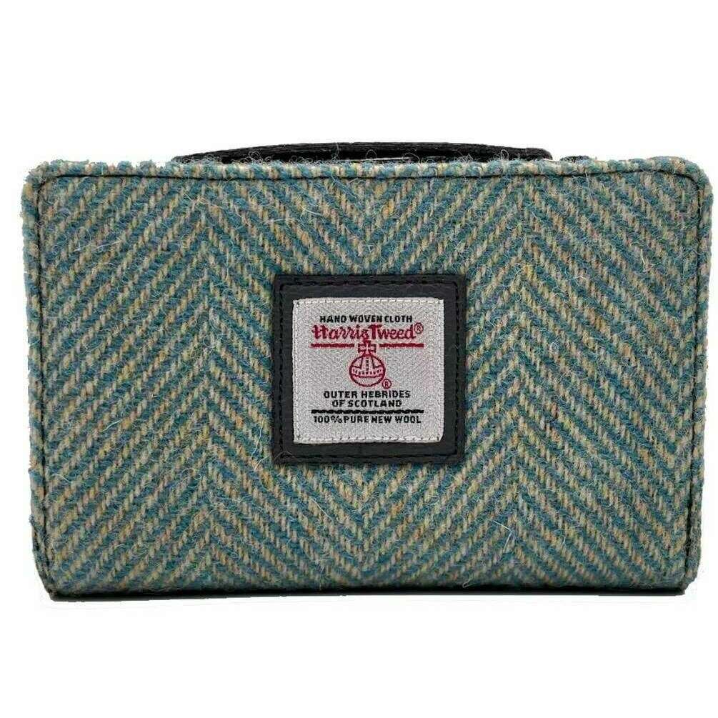 Maccessori Harris Tweed Mittelgroße Reißverschluss-Geldbörse – Türkisblau