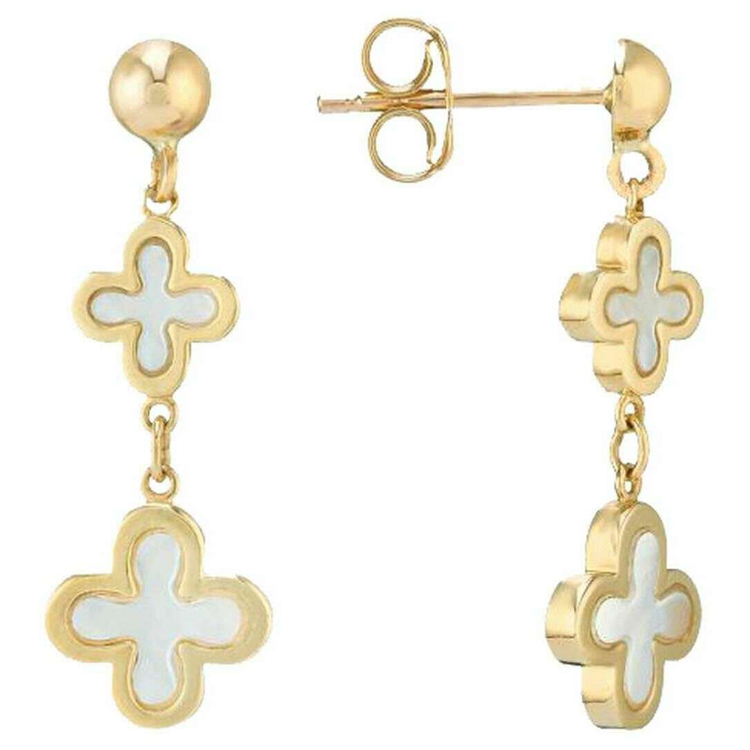 Mark Milton Perlmutt-Blumen-Ohrhänger – Gelbgold/Weiß