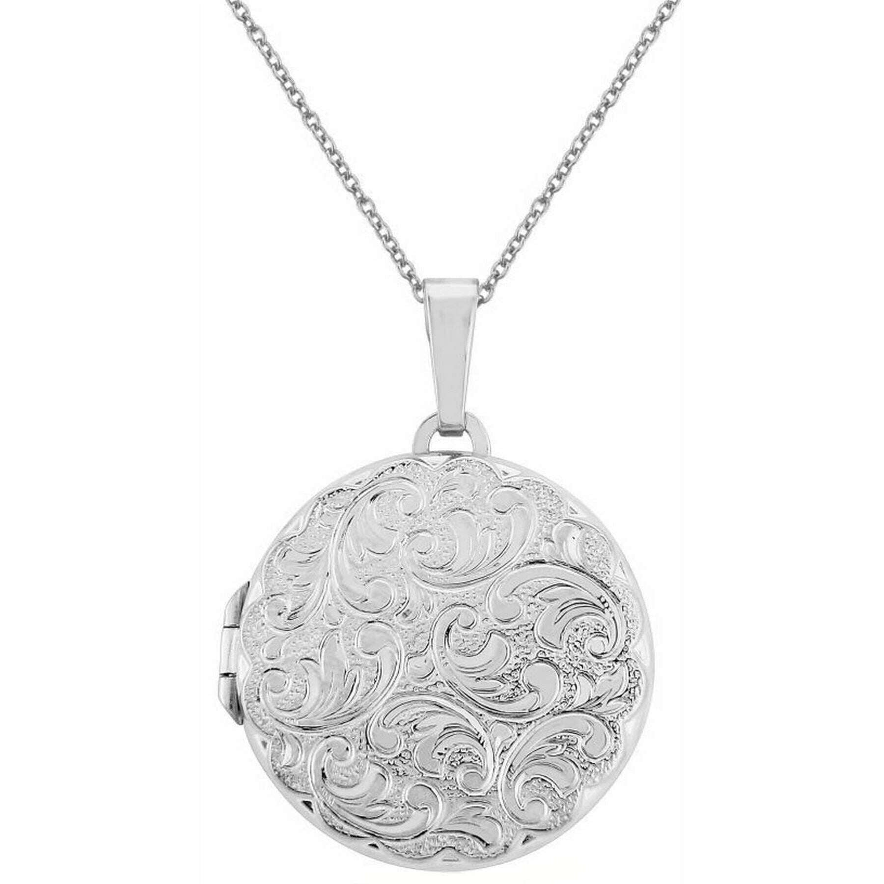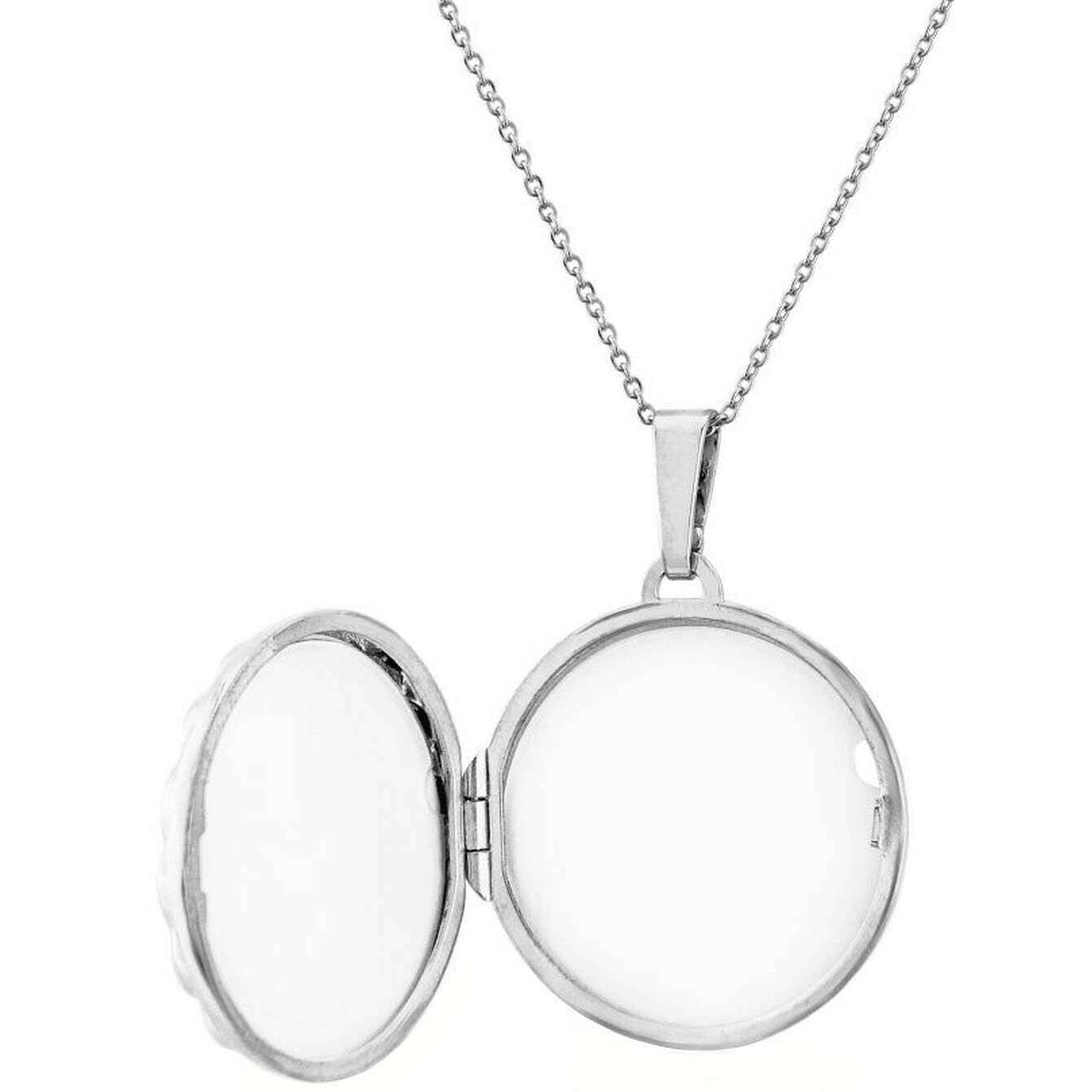 Diese runde, geprägte Medaillon-Halskette von besteht aus Sterlingsilber Mark Milton ist perfekt für Frauen und ein Muss. Es misst 46 cm (Länge). Alle Halsketten werden komplett in einer Mark-Milton-Verpackung geliefert. Die Mark Milton Runde geprägte Medaillon-Halskette – Silber verfügt über ein zartes silbernes, rundes Prägedesign auf der Vorderseite und eine glatte Satinoberfläche auf der Rückseite. Dieses bedeutungsvolle Geschenk hat die ideale Größe und eignet sich perfekt für Minifotos von geliebten Menschen und sogar für kleine Erinnerungsstücke.