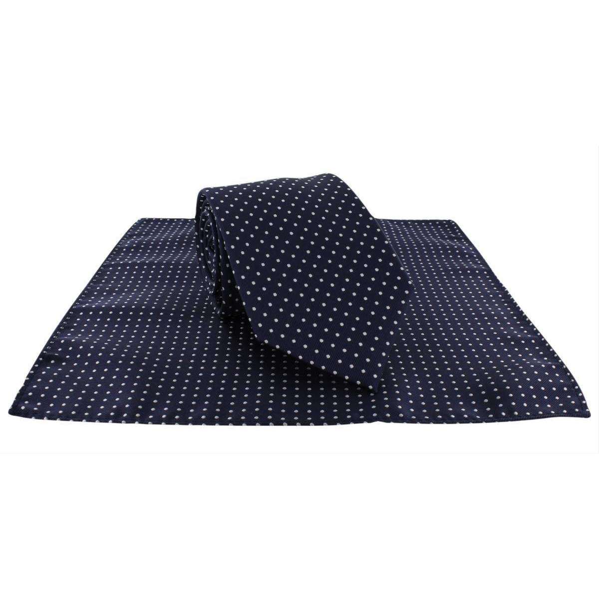 Michelsons of London Spot Polyester Krawatte und Pocket Square Set - Marine/Weiß